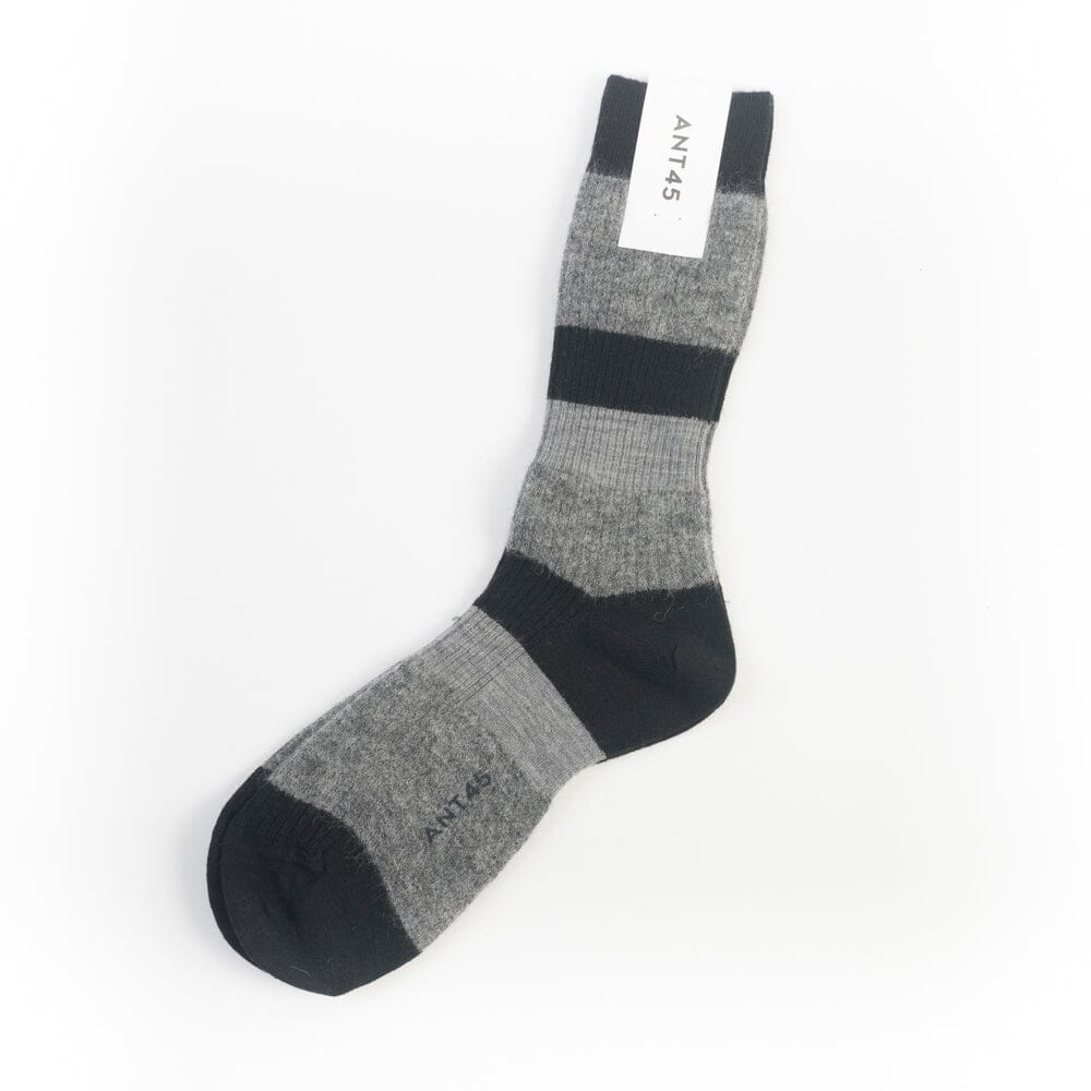 Calzino corto in lana, mohair e alpaca, di colore grigio e nero.
