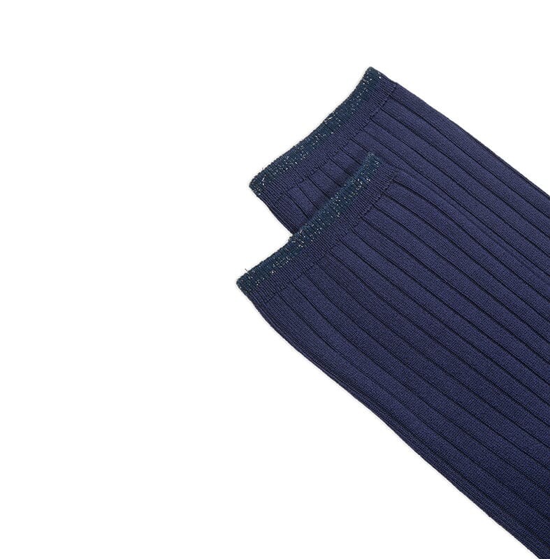 Calzino corto a coste in viscosa e filo laminato.