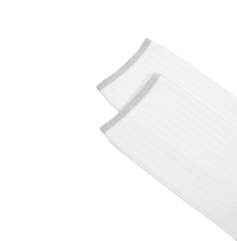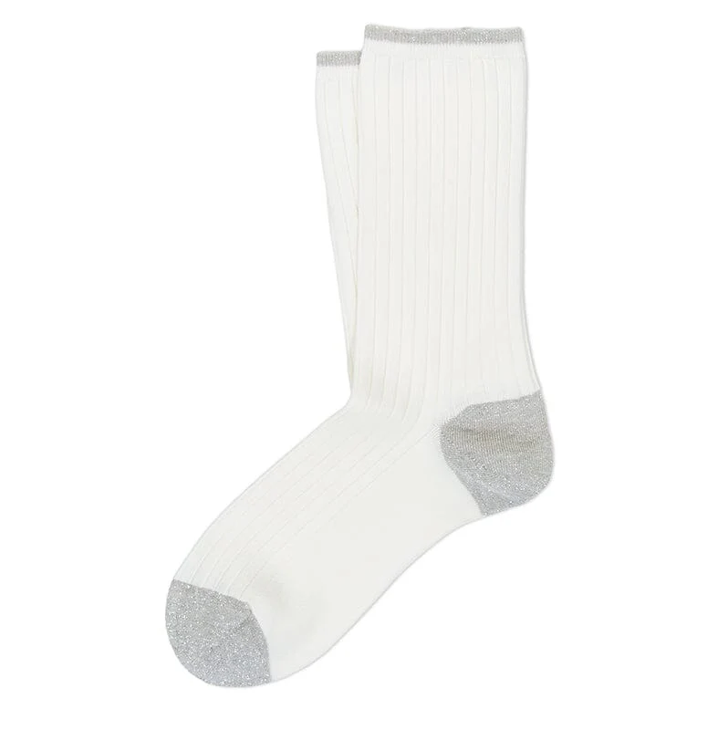 Calzino corto a coste in viscosa e filo laminato.