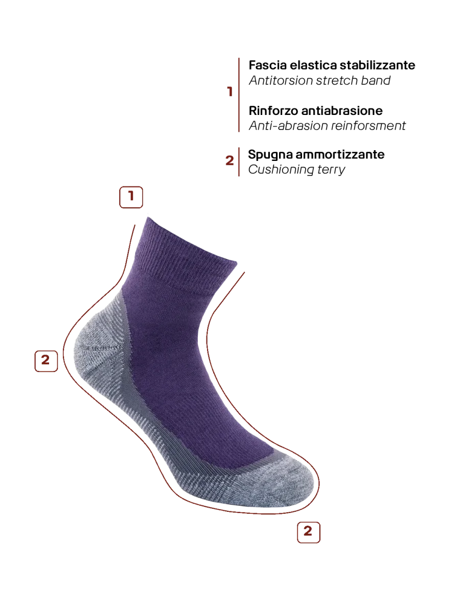 Per le tue camminate, quando desideri comfort: una calza leggera che rispetta le forme dei tuoi piedi, con un polsino morbido che non stringe.