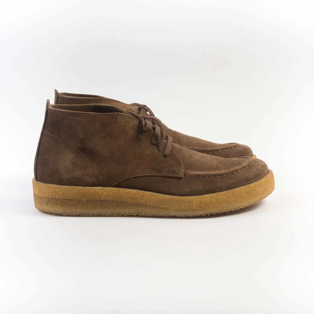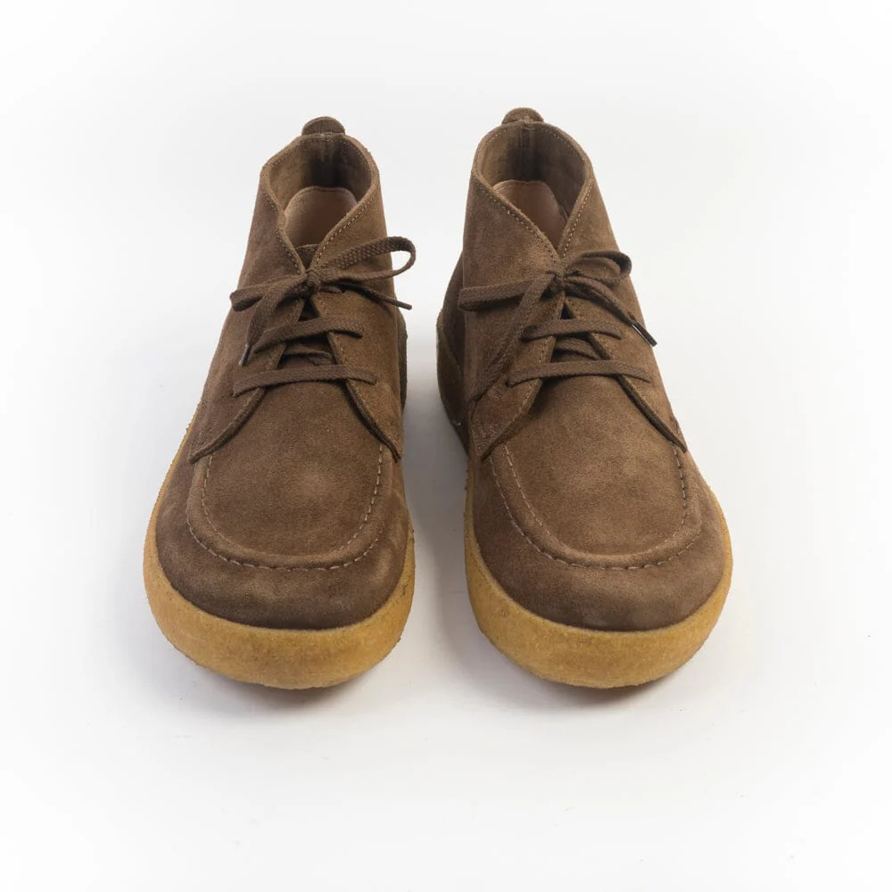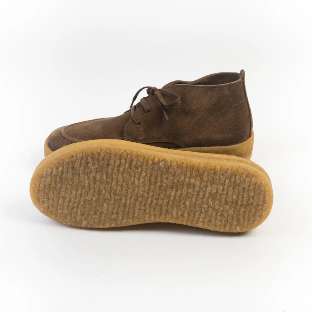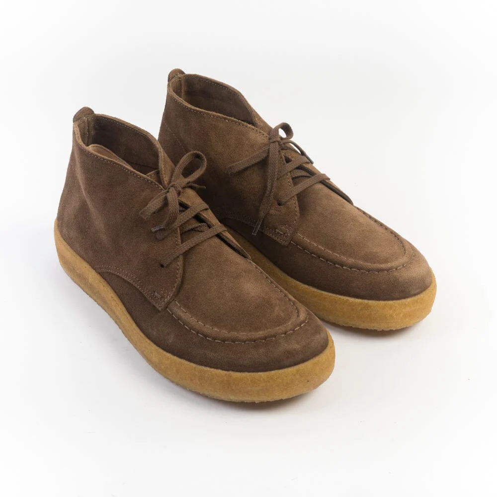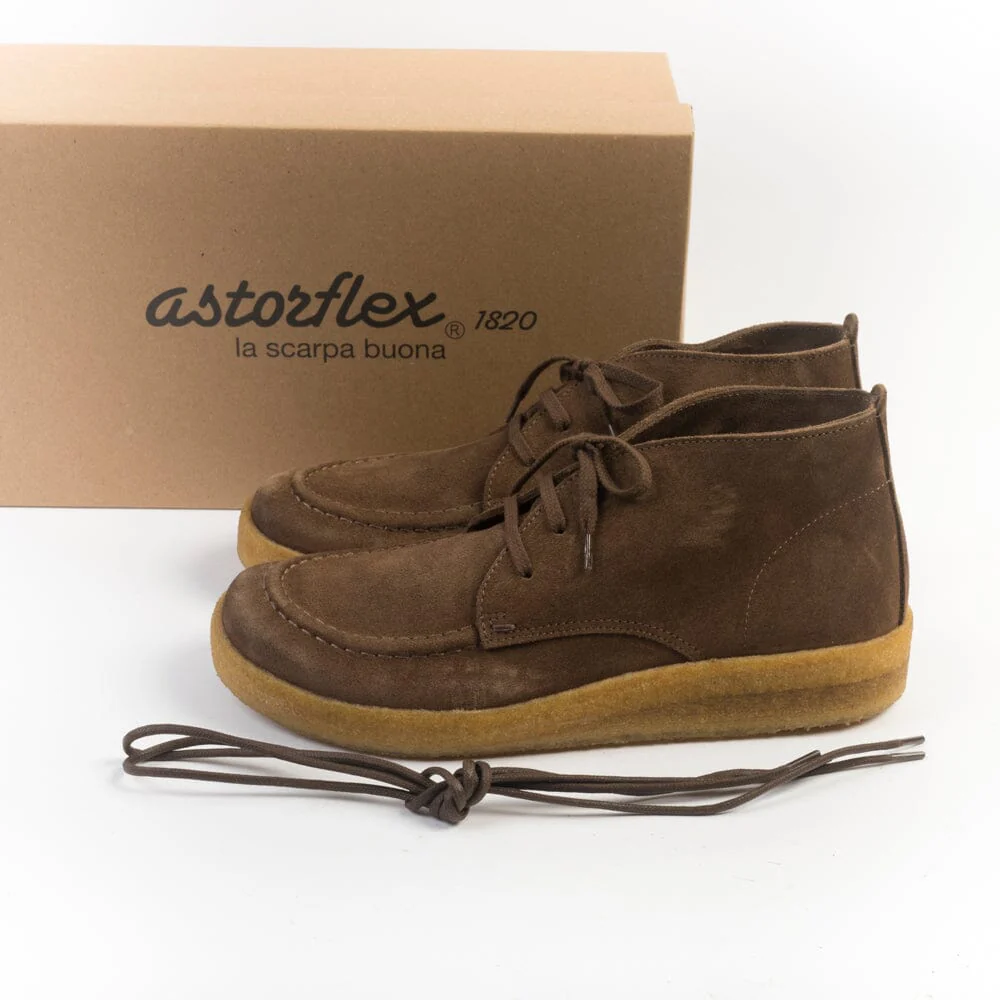 Polacco di Astrolflex realizzato artigianalmente in morbido camoscio di colore sigaro con cucitura in rilievo su fronte tomaia. Punta arrotondata con forma a piede. Allacciatura tre fori, lacci piatti in cotone e doppi lacci in cotone cerato di ricambio in nuance. Interno foderato in pelle, intersuola in cuoio. Suola in para naturale di cm 2/3.