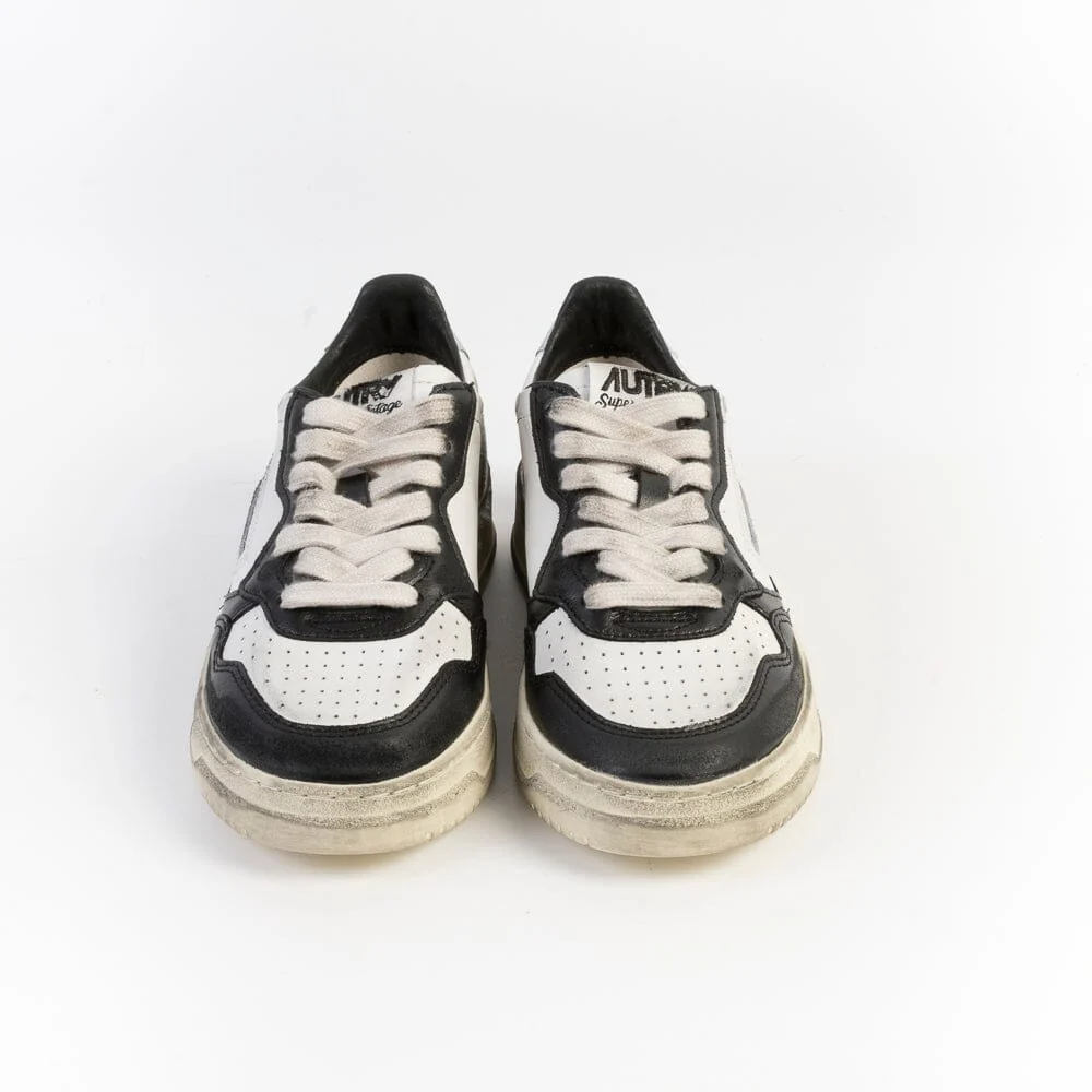 Edizione vintage della classica Medalist di Autry, realizzata in pelle di colore bianco con effetti vintage, inserti in pelle nera e laminato argento, con trattamento effetto vintage. Dettaglio tallone posteriore in pelle di colore argento. Applicazione di logo del marchio con bandiera americana sui lati esterni. Lacci in cotone di colore ocra vintage. Suola in gomma di colore avorio con effetti anticati. Plantare in pelle estraibile. Plantare interno estraibile.
