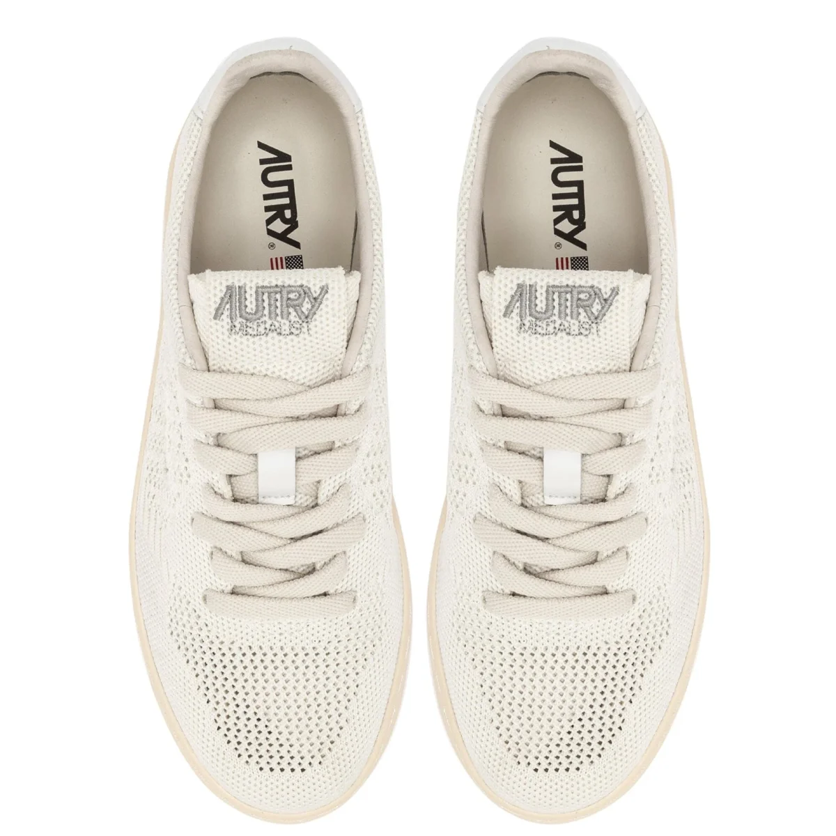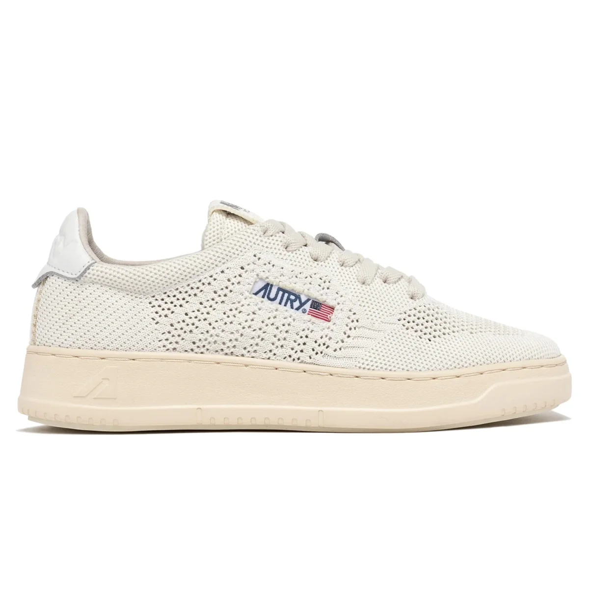 Classica Medalist di Autry realizzata in tessuto forato di colore avorio. Dettaglio posteriore in pelle di colore bianco. Applicazione di logo del marchio con bandiera americana sui lati esterni. Suola in gomma in nuance. Plantare interno estraibile.
