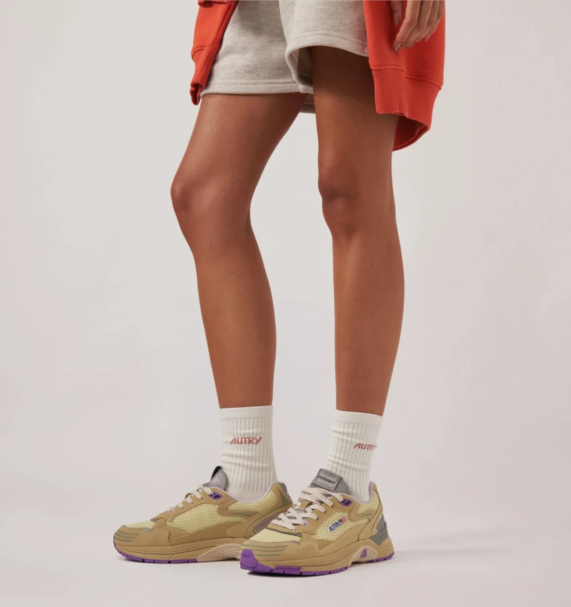 Logo “Autry” cucito lateralmente in contrasto, di colore rosa.