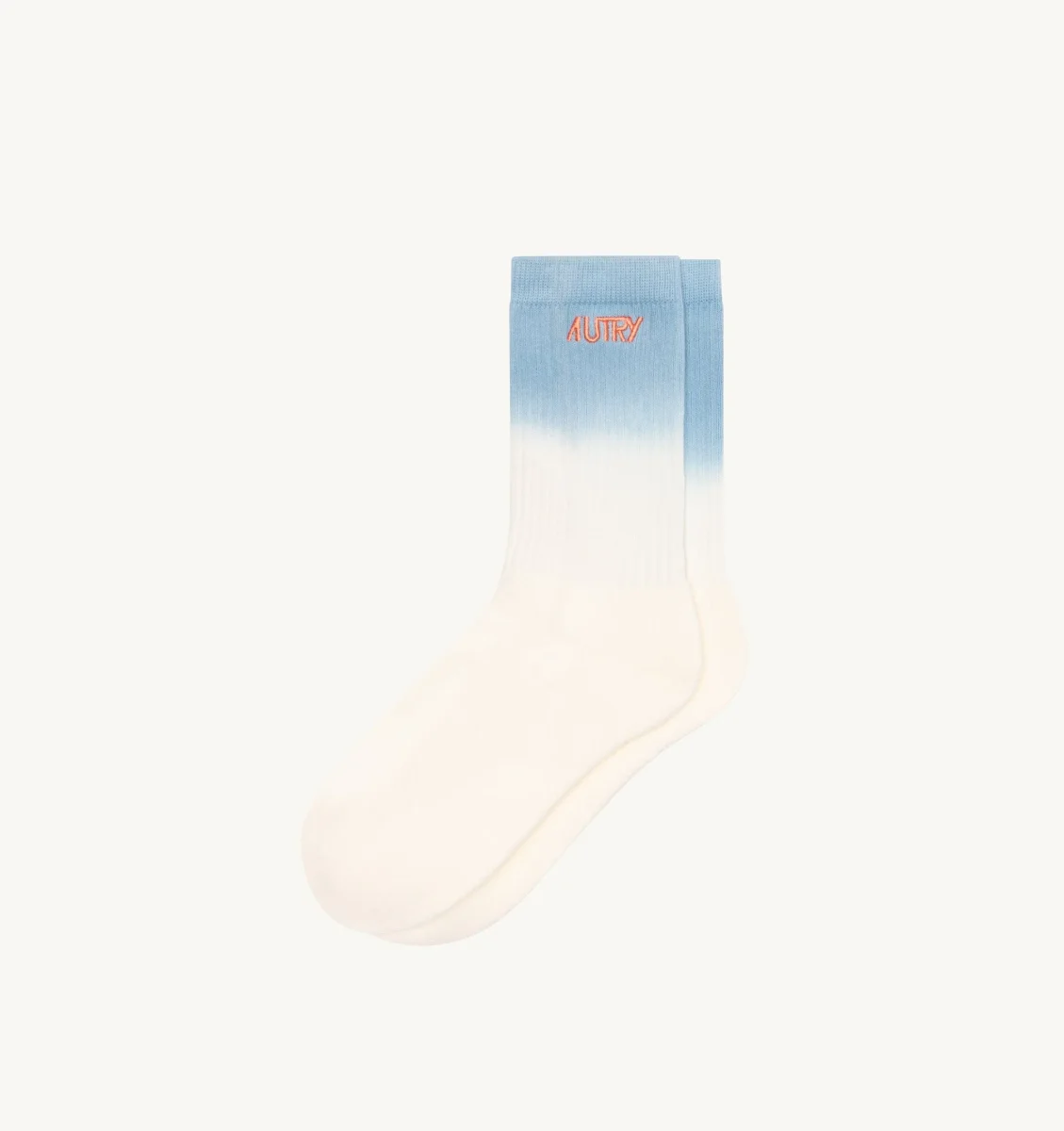 Originale calzino in cotone a coste di Autry, di colore avorio e azzurro degradè.