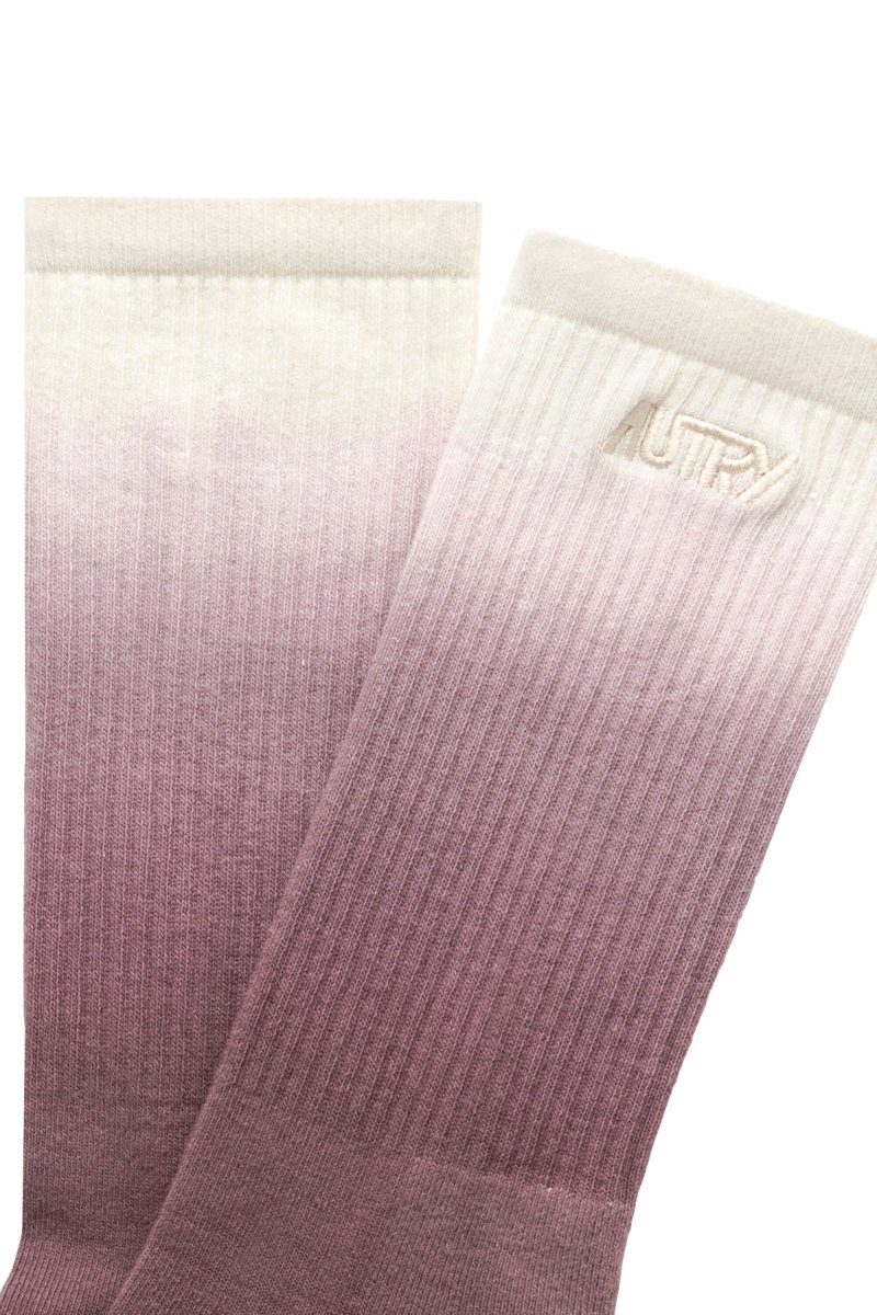 Originale calzino in cotone di Autry, realizzato con decorazione degradè nei colori bianco e viola.