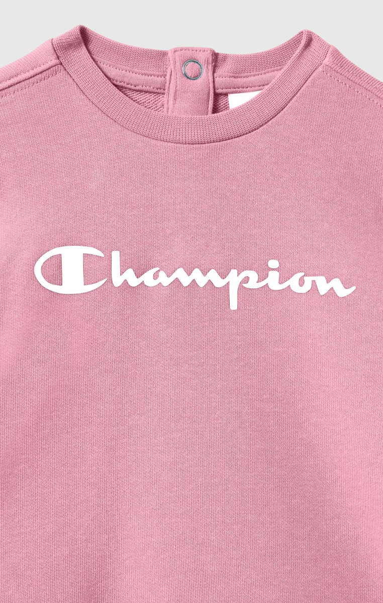 This baby set is designed for everyday comfort and ease of movement. Made from lightweight terry, it is ideal for daily wear and transitional seasons. The crewneck sweatshirt features a contrasting Champion logo on the front, while the matching pants complete the look with a comfortable fit.@@@Fit: Standard Fit, versatile and comfortable fit, clean lines, regular shoulder |Composition: 55% Cotton, 45% Polyester |Fabric: Ultra Light Basic Terry |Weight: 240 g/m² |Two-piece set: crewneck sweatshirt and matching pants |Lightweight sweatshirt |Unbrushed interior |Crewneck with ribbed finishes |Pants with elasticated waistband |Cuffed hems