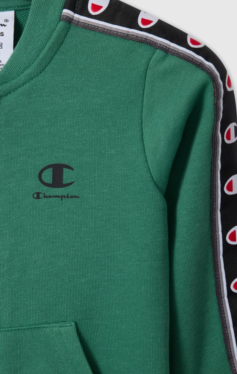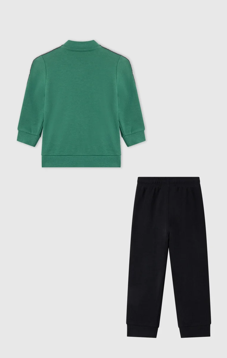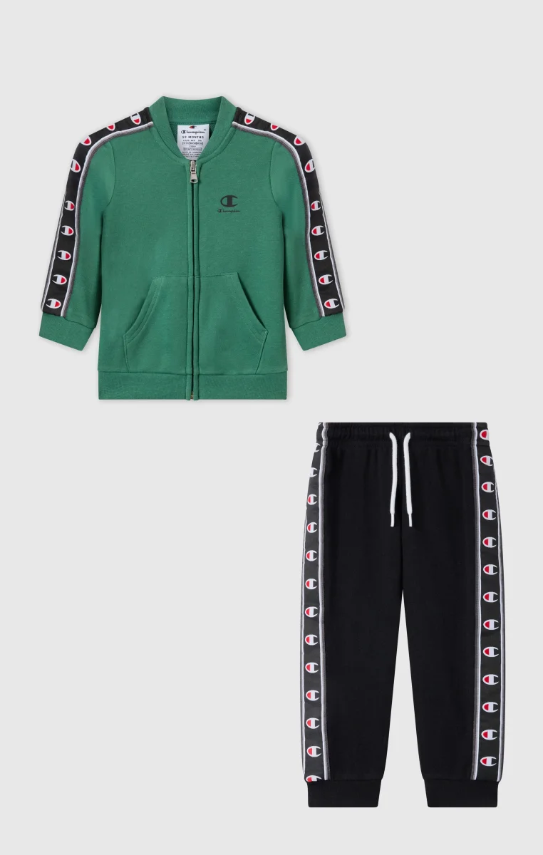 This baby tracksuit features a clean and practical sportswear design inspired by the Champion DNA. The set includes a full zip sweatshirt and matching pants, both made from lightweight terry fabric in a cotton and polyester blend, designed to provide comfort for everyday wear. The Standard Fit ensures a regular and comfortable silhouette, ideal for playtime and relaxation. The C-Logo tape along the sleeves and pant sides completes the look with an iconic Champion touch.@@@Standard Fit, comfortable with a regular silhouette |Lightweight cotton-polyester terry fabric |Composition: 55% Cotton, 45% Polyester |Fabric weight: 240 g/m² |Set includes a full zip sweatshirt and matching pants |Elasticated waistband on the pants |Ribbed cuffs