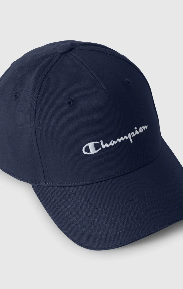 This baseball cap features a clean, timeless design, ideal for completing casual and lifestyle outfits. Made from durable cotton twill, it offers a structured yet comfortable fit for everyday wear. The embroidered Champion logo on the front adds an iconic and recognizable heritage touch.@@@Baseball style |Cotton twill fabric |Fabric weight: 290 g |Composition: 100% Cotton |Panel construction |Curved visor |Ventilation eyelets |Embroidered Champion logo on the front