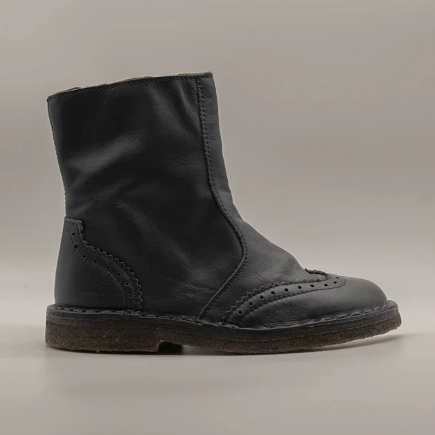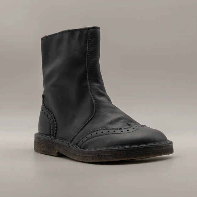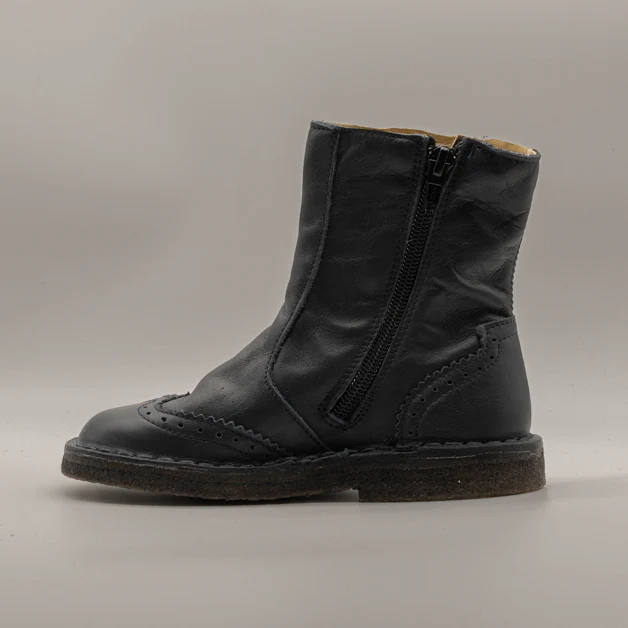 Le finiture bucherellate decorative donano un tocco elegante e raffinato, perfetto per abbinamenti sia casual sia più curati. La zip laterale facilita la calzata, rendendo lo stivaletto pratico anche per le bambine più autonome.