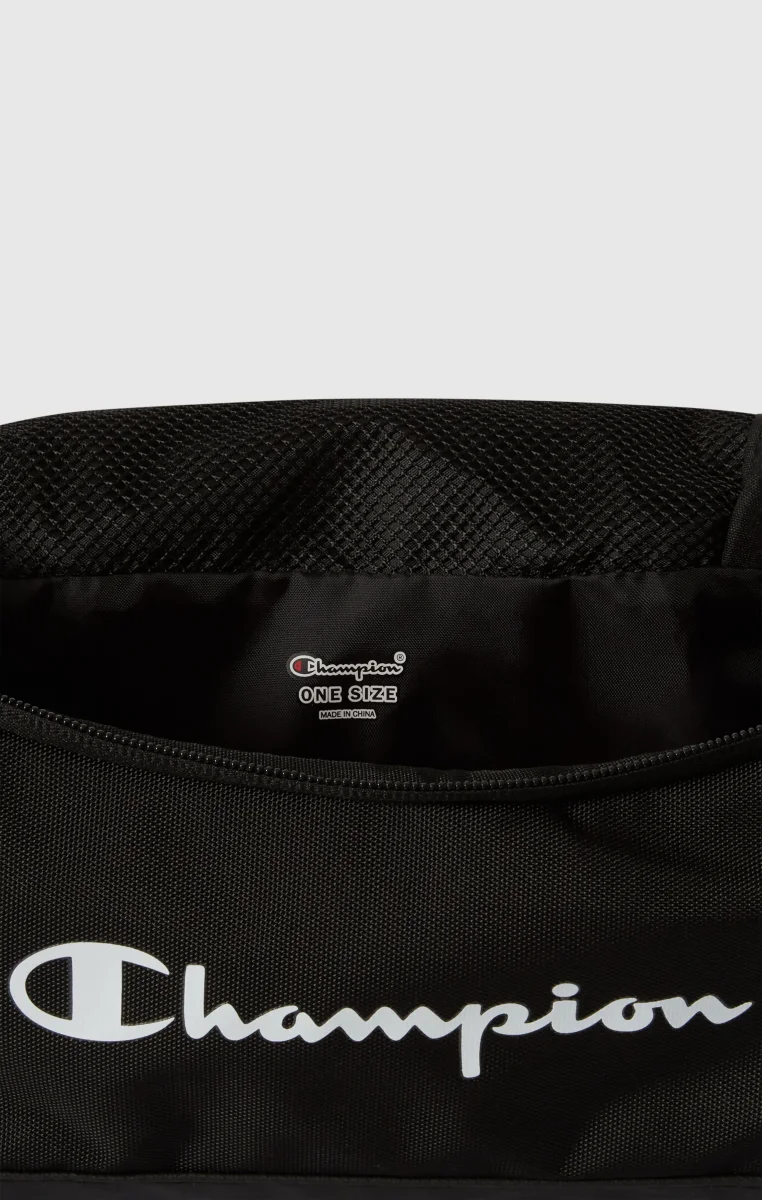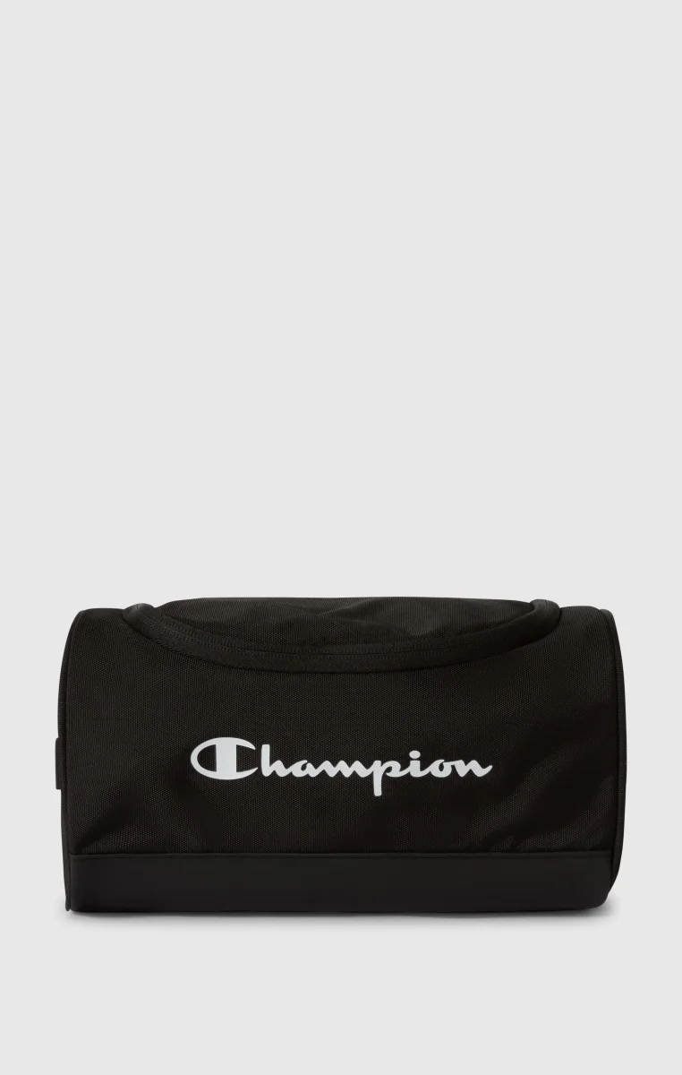 Compact and practical beauty case, designed to organize travel and gym essentials. The structure in 900D Poly Woven fabric with water-repellent treatment ensures durability and protection during everyday use. Inside, an integrated mirror provides added convenience when on the go. The main zip opening allows easy access to the contents, while the inner zip pocket keeps smaller items secure and well organized. The Champion logo on the front adds an iconic, sporty touch.@@@Compact and functional accessory |Dimensions: 28 × 15.5 × 15.5 cm |Capacity: 6 L |Fabric: 900D Poly Woven W/R |Composition: 100% Polyester |Weight: 280 g/m² |Main zip closure |Inner zip pocket |Integrated inner mirror |Champion logo printed on the front