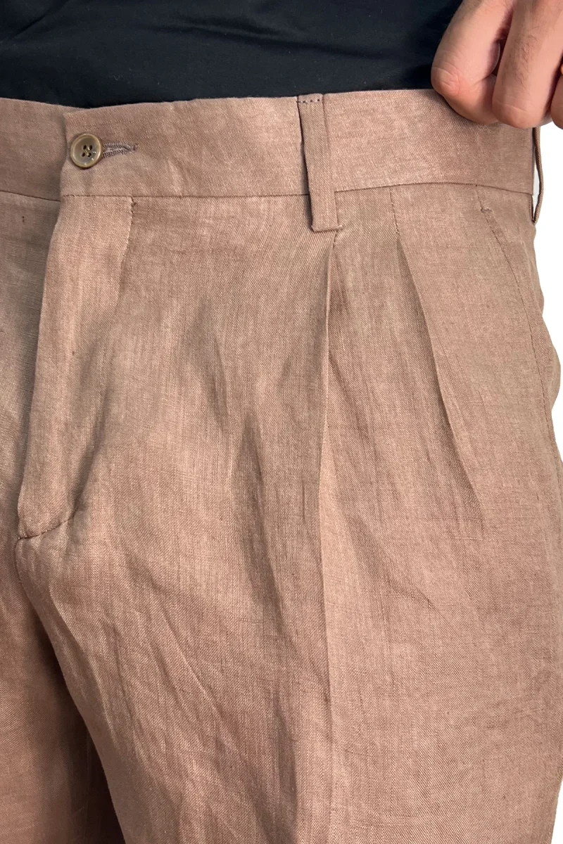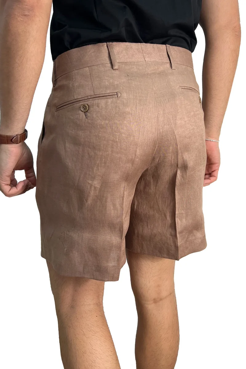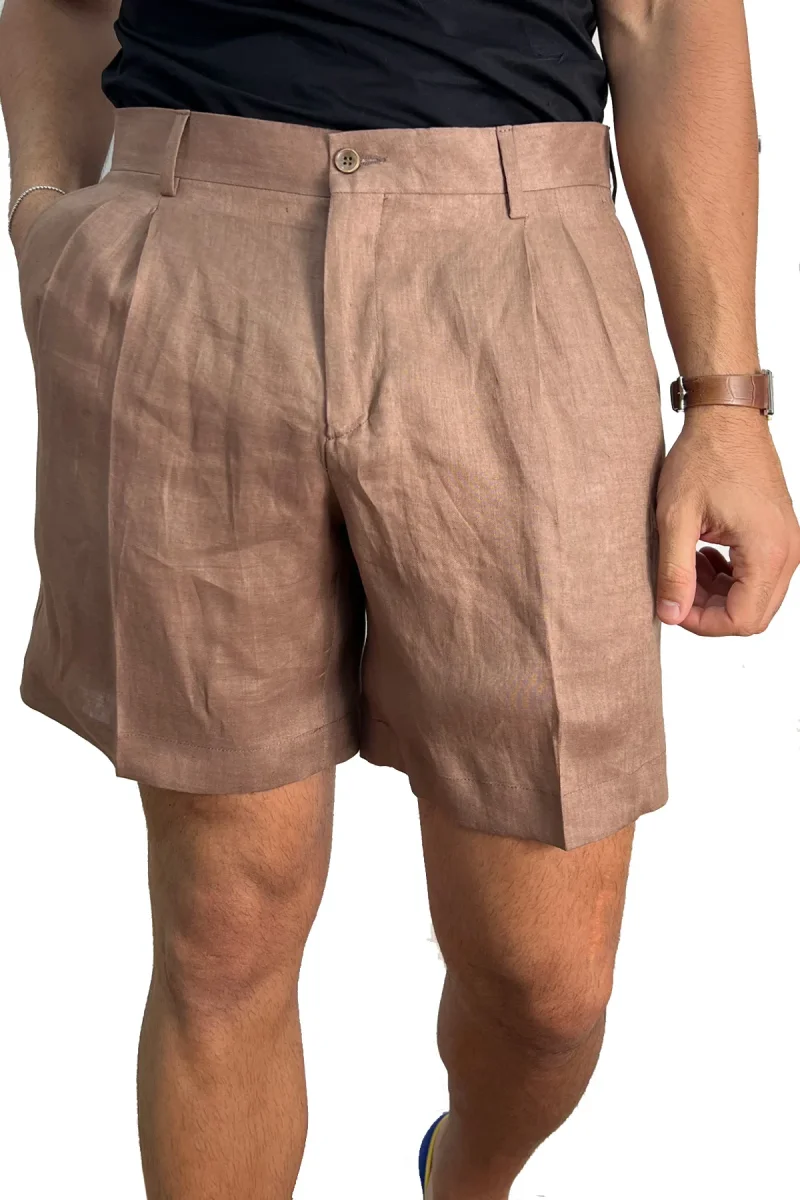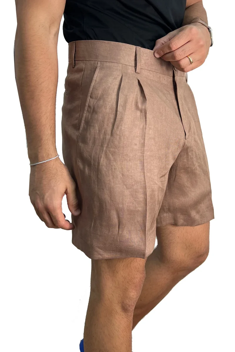 Bermuda uomo panna con doppia pinces vestibilità Regolare tasca america 100% Lino tinta unita made in italy