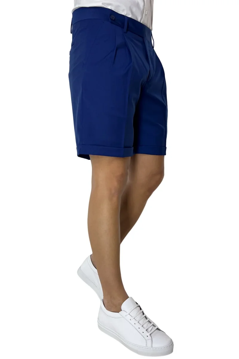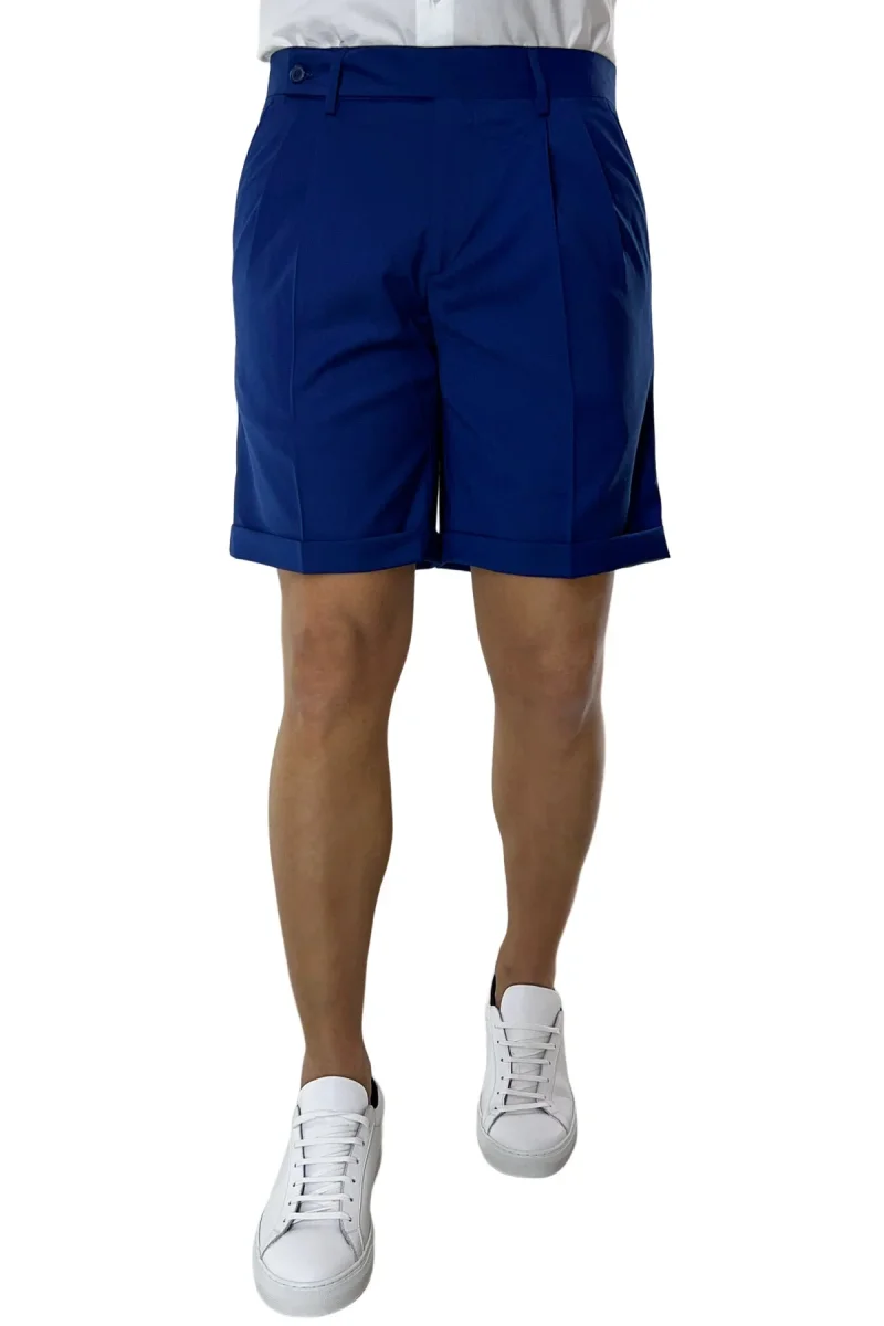 BERMUDA UOMO ROYAL BLU CHIUSURA PROLUNGATA DOPPIA PINCES