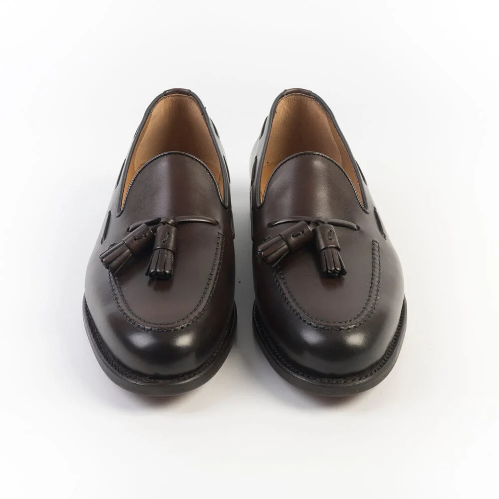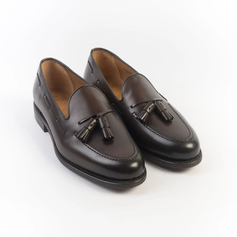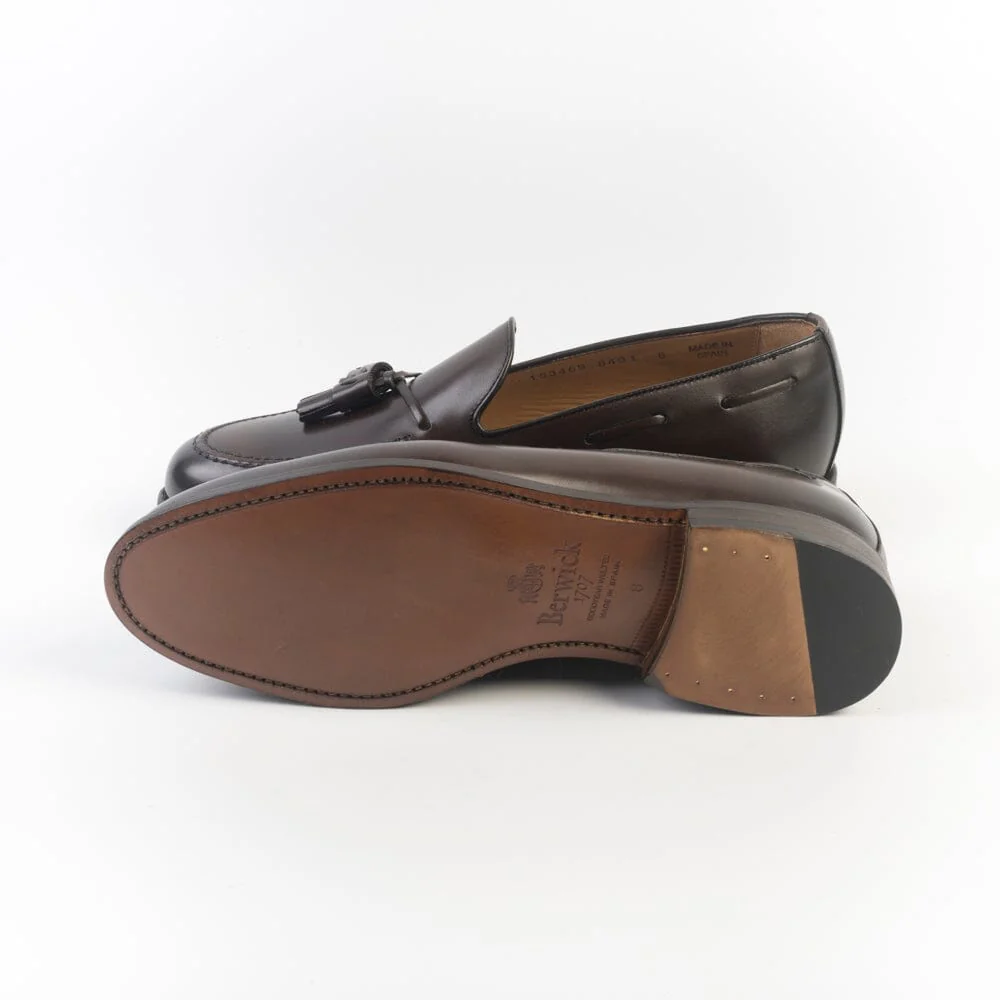 Mocassino classico di Berwick realizzato in pelle con nappine di colore marrone. Punta affusolata, interno sfoderato. Sottopiede in pelle. Suola in cuoio.