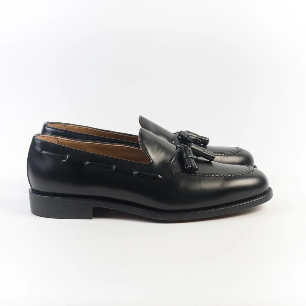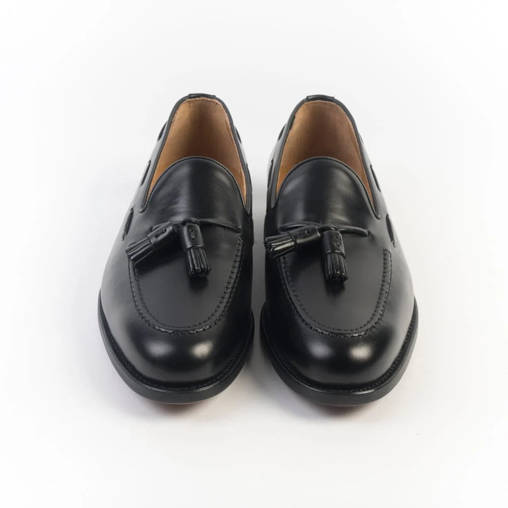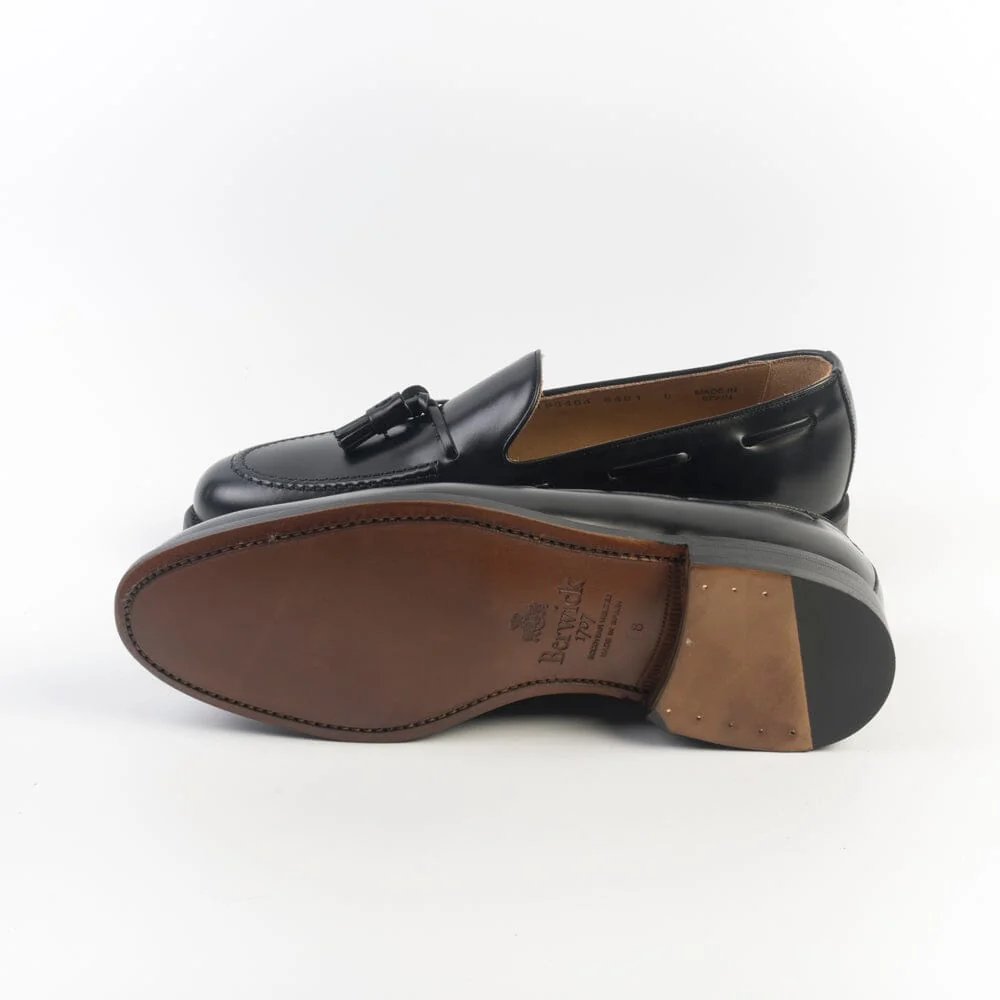 Mocassino classico di Berwick realizzato in pelle con nappine di colore nero. Punta affusolata con interno sfoderato. Sottopiede in pelle. Suola in cuoio.