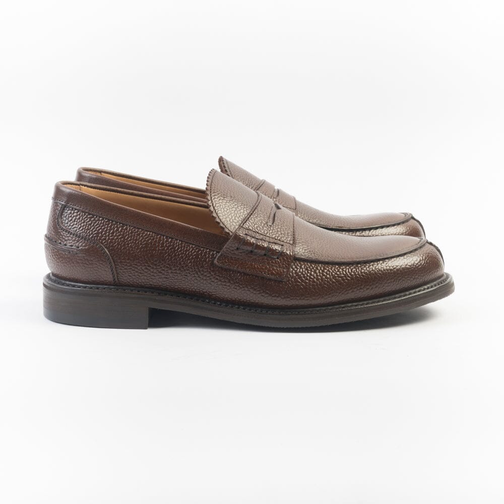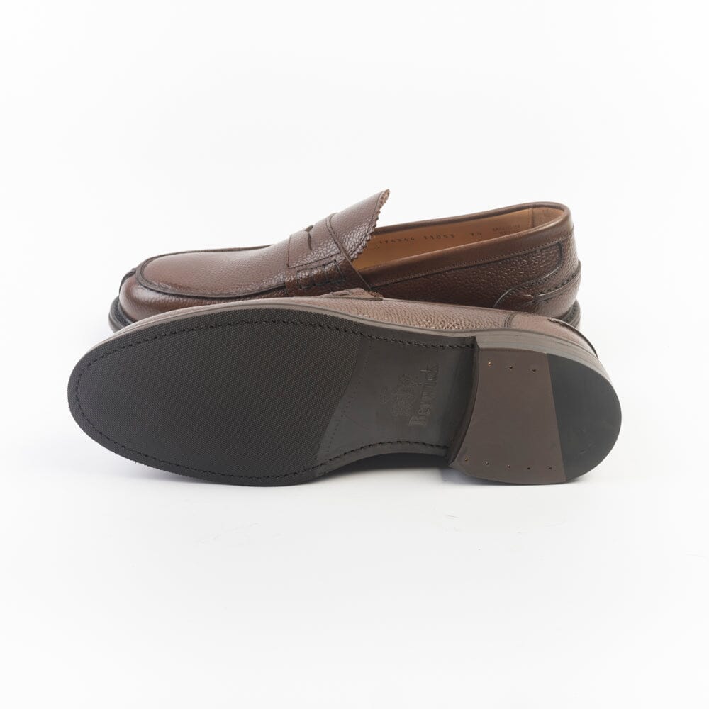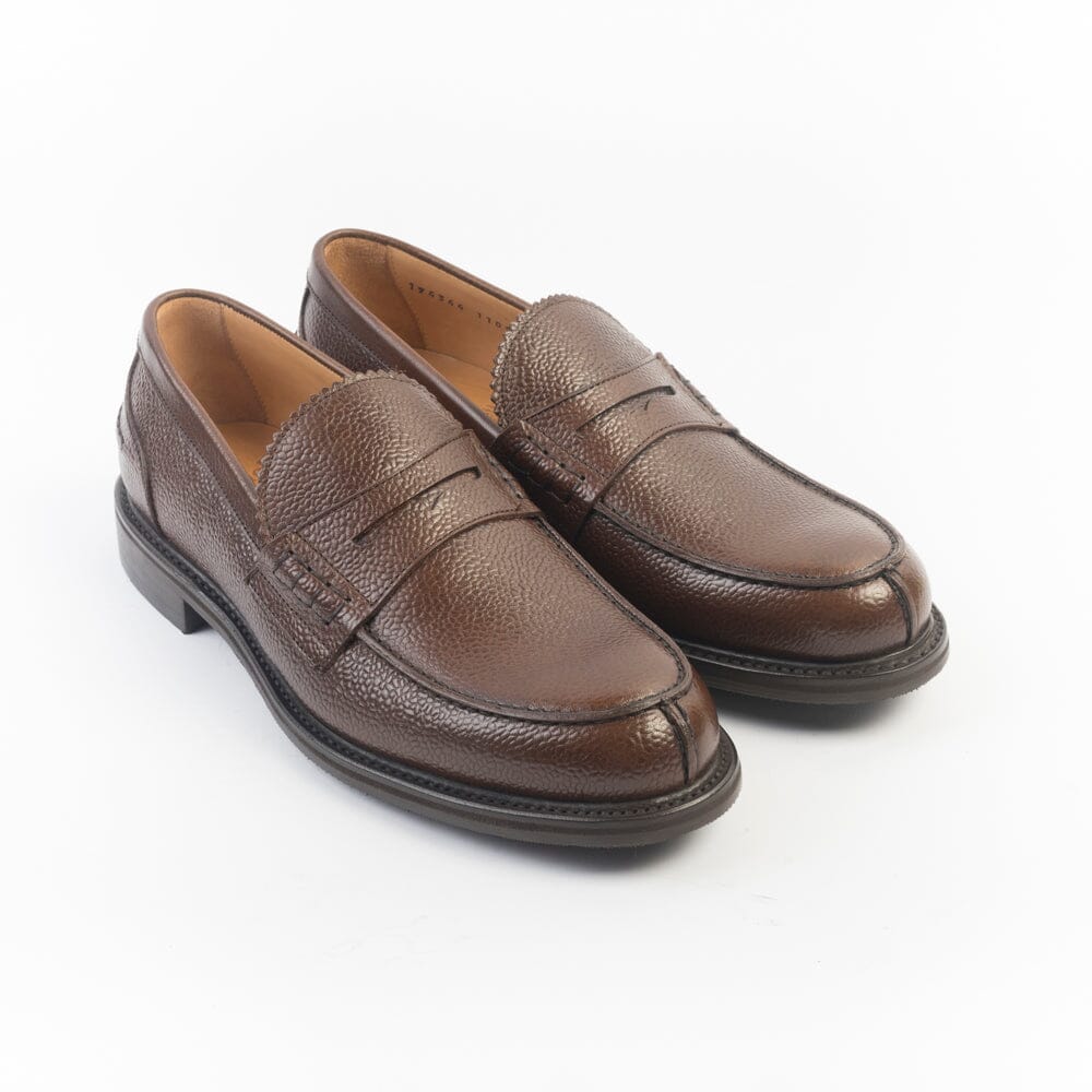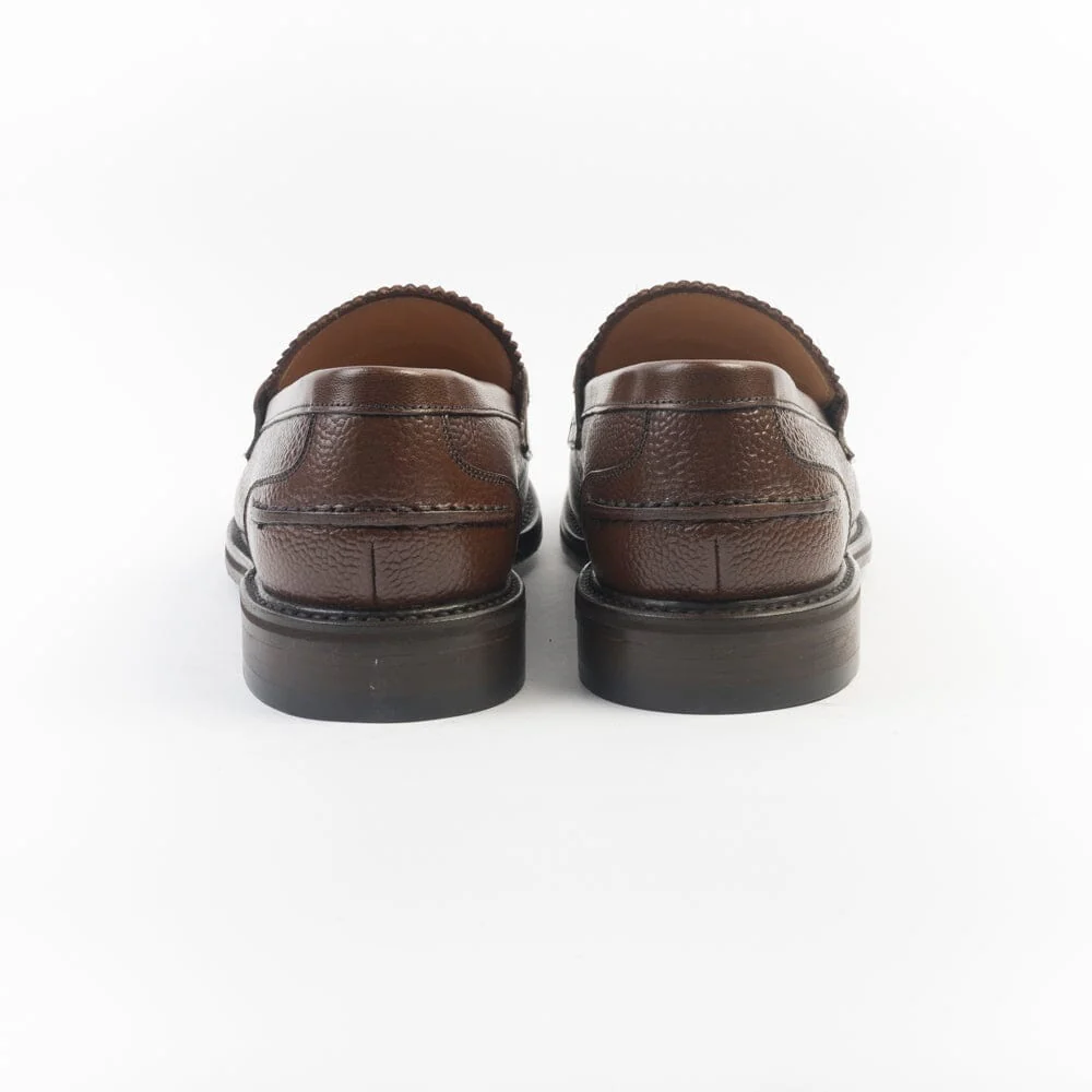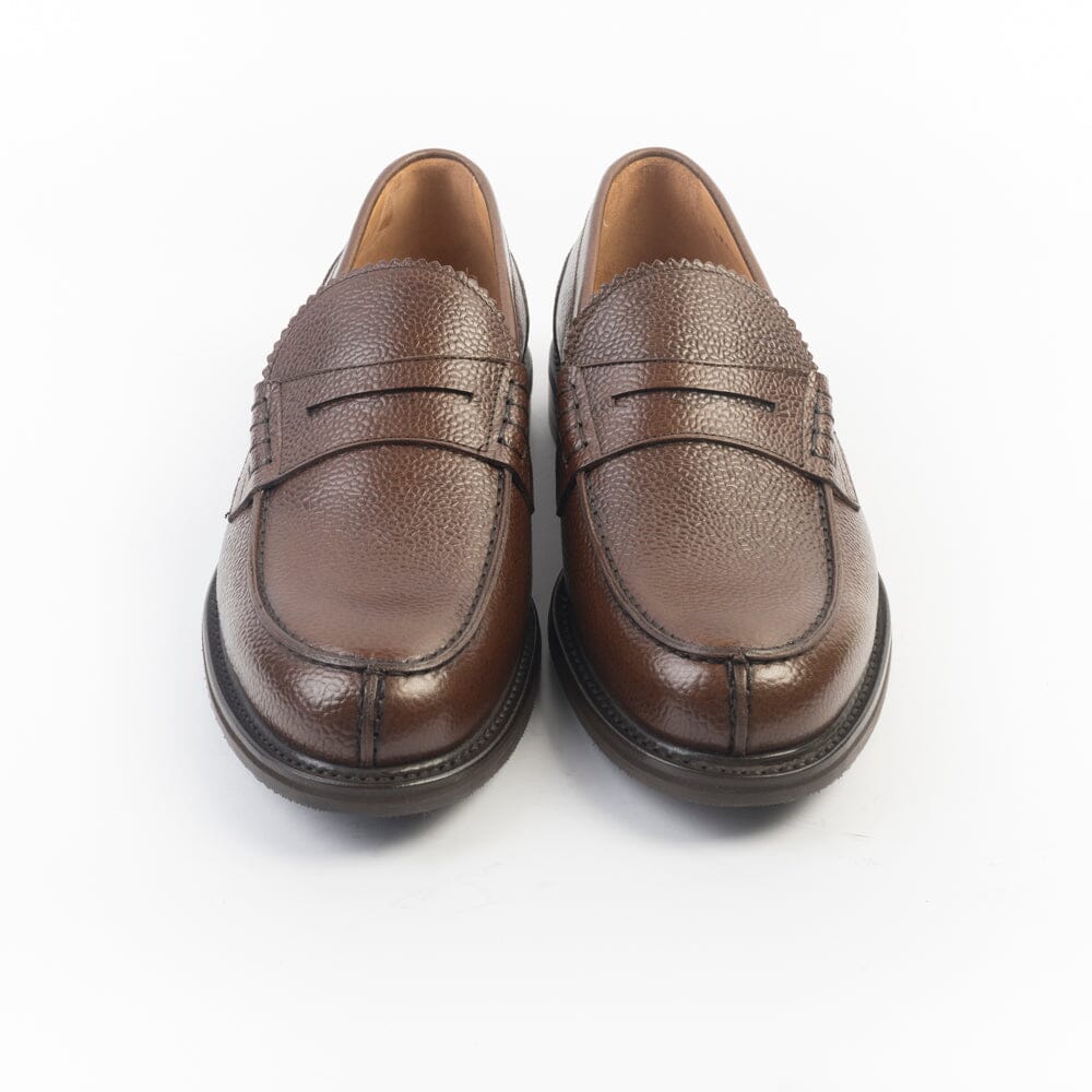 Mocassino di Berwick 1707 realizzato in pelle martellata di colore marrone. Punta affusolata con mascherina. Interno e sottopiede foderato in pelle. Suola in gomma.