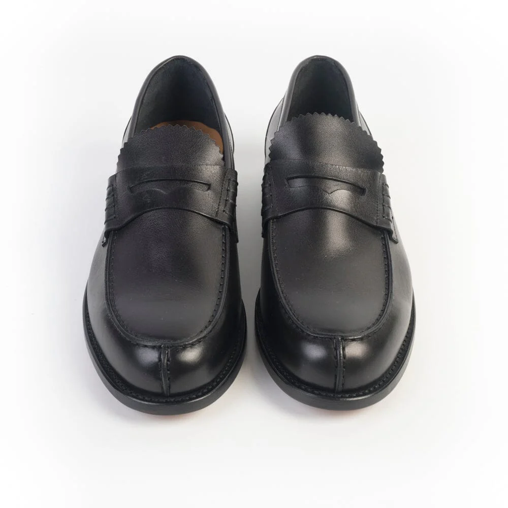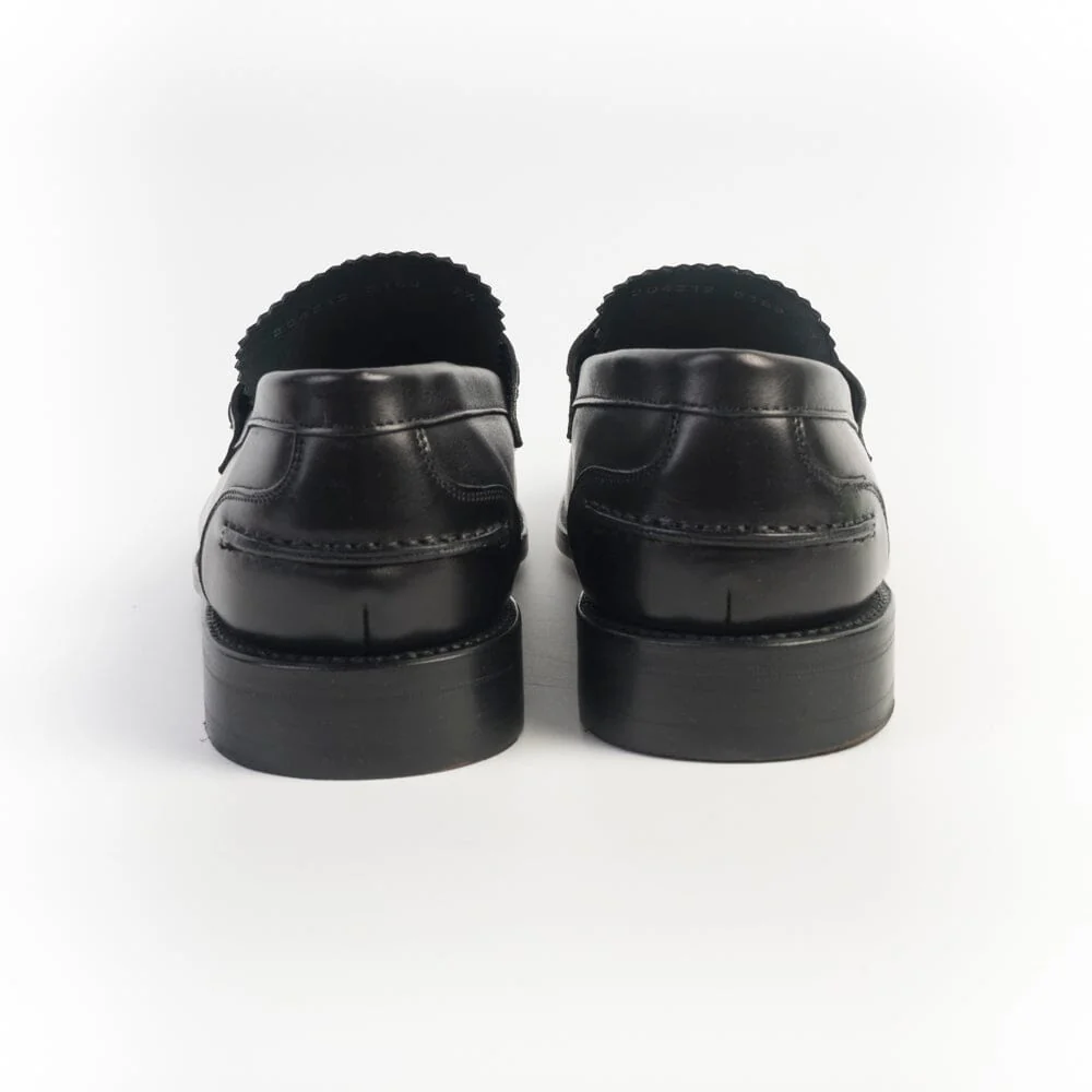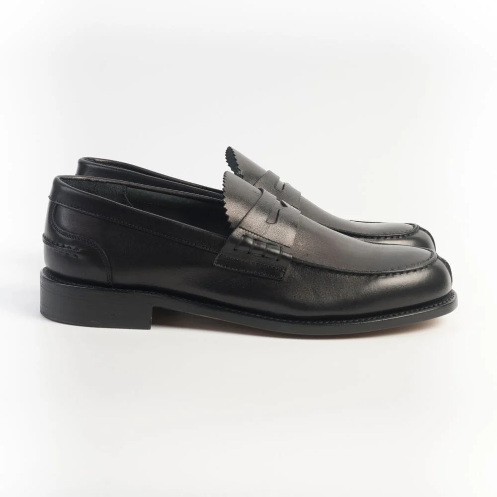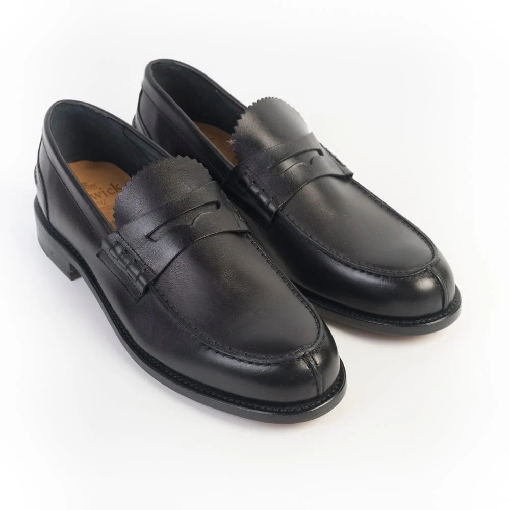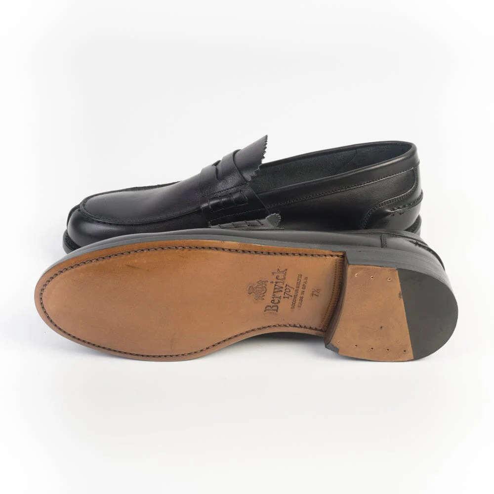 Classico Mocassino con mascherina di Berwick 1707 realizzato in pelle di colore nero. Interno sfoderato, sottopiede in pelle. Suola in cuoio