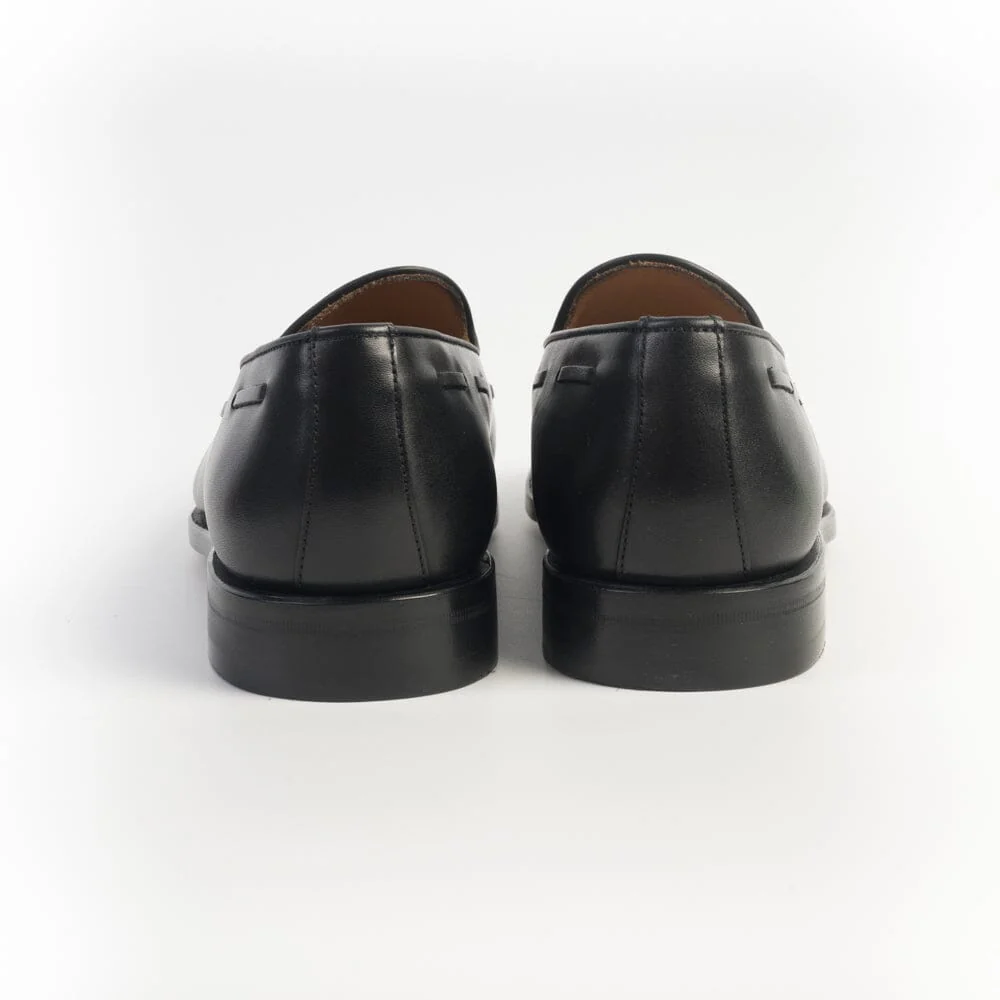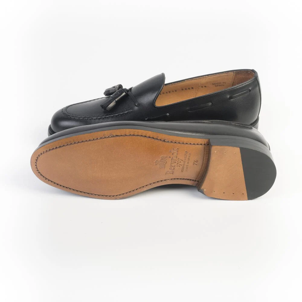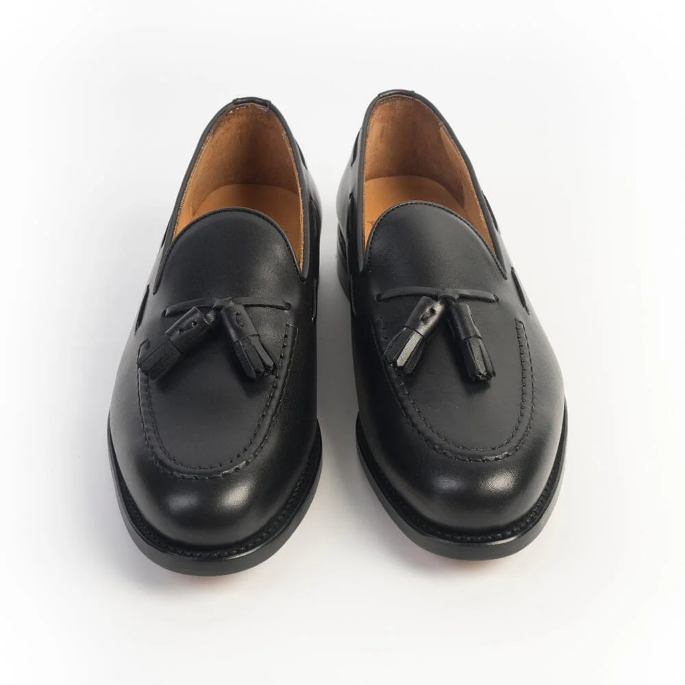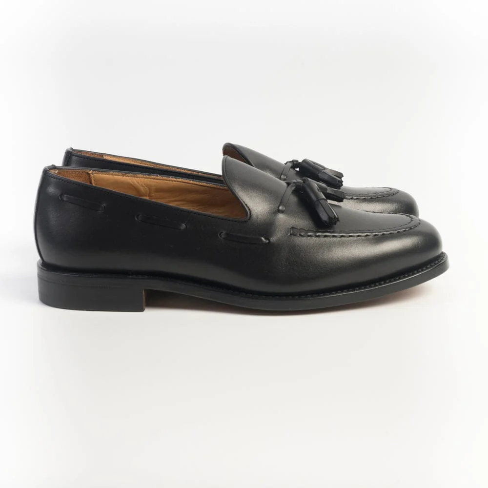 Mocassino con nappine di Berwick 1707 realizzato in pelle di colore nero. Punta affusolata, interno sfoderato. Sottopiede in pelle. Suola in cuoio.
