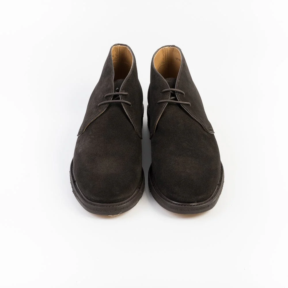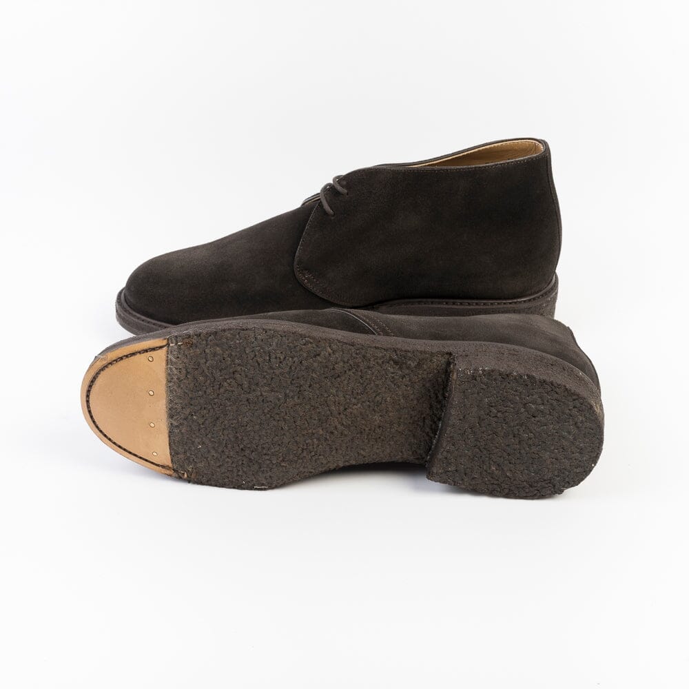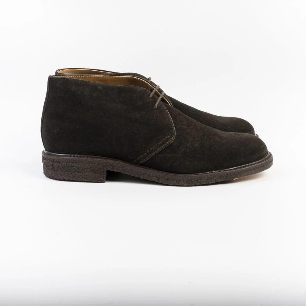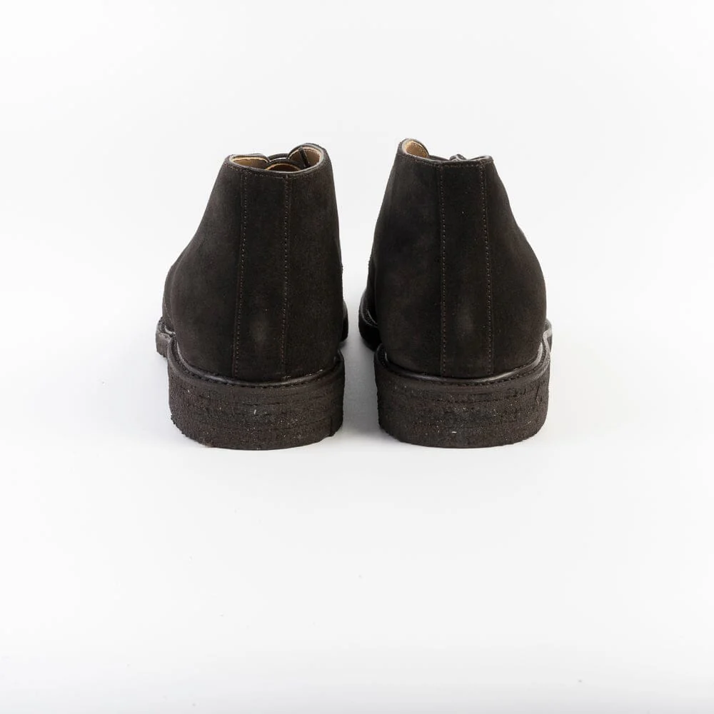 Polacco di Berwick 1707 realizzato in camoscio di colore testa di moro. Allacciatura due fori, lacci in cotone cerato in nuance, lavorazione Goodyear, interno foderato, sottopiede in pelle. Suola in gomma para con puntale in cuoio. Calzata regolare.