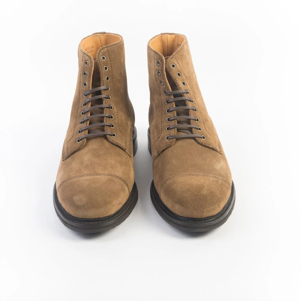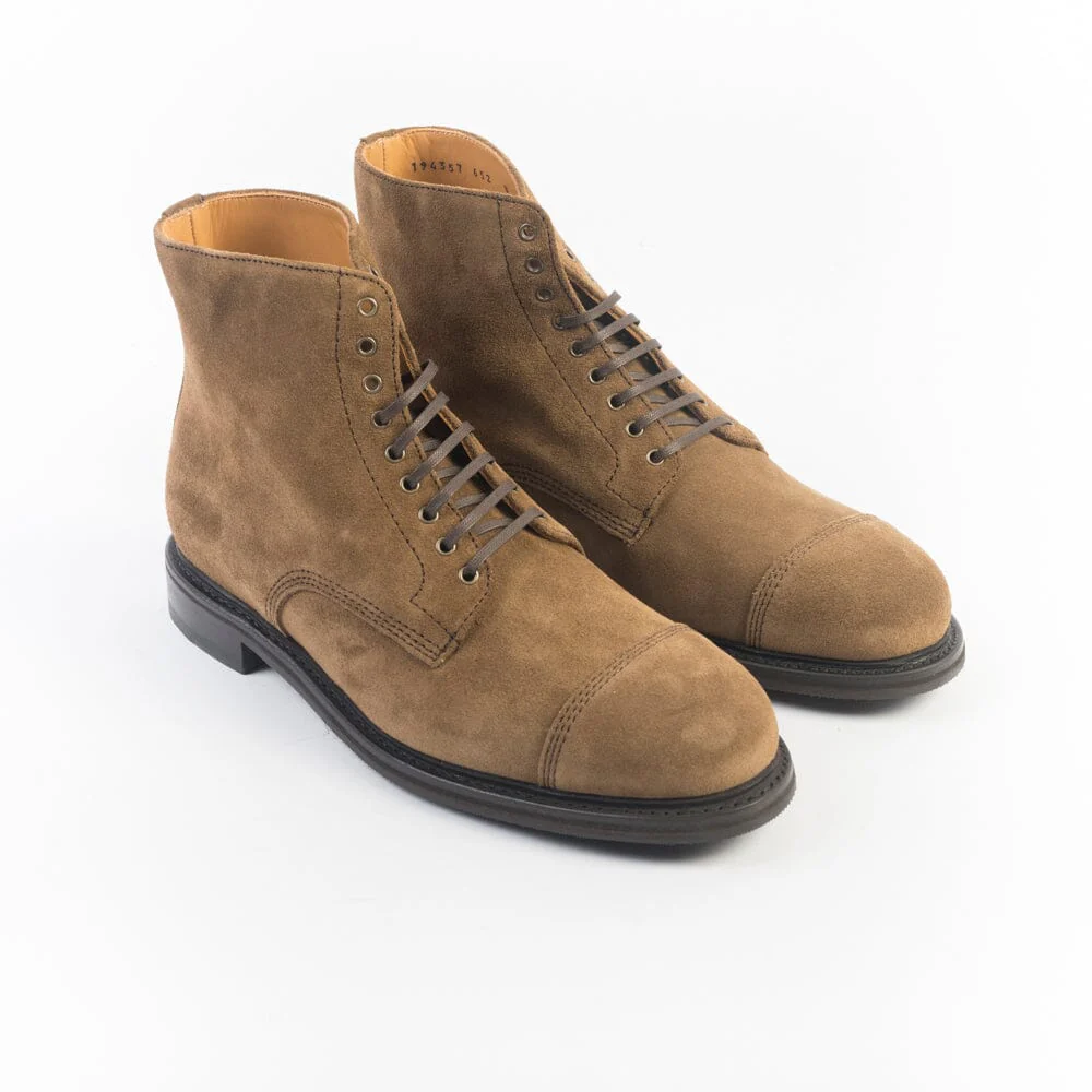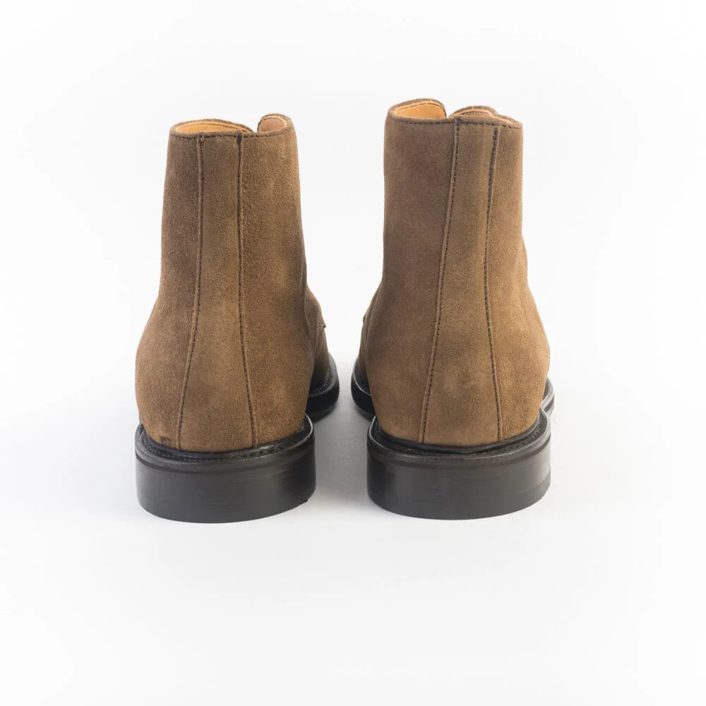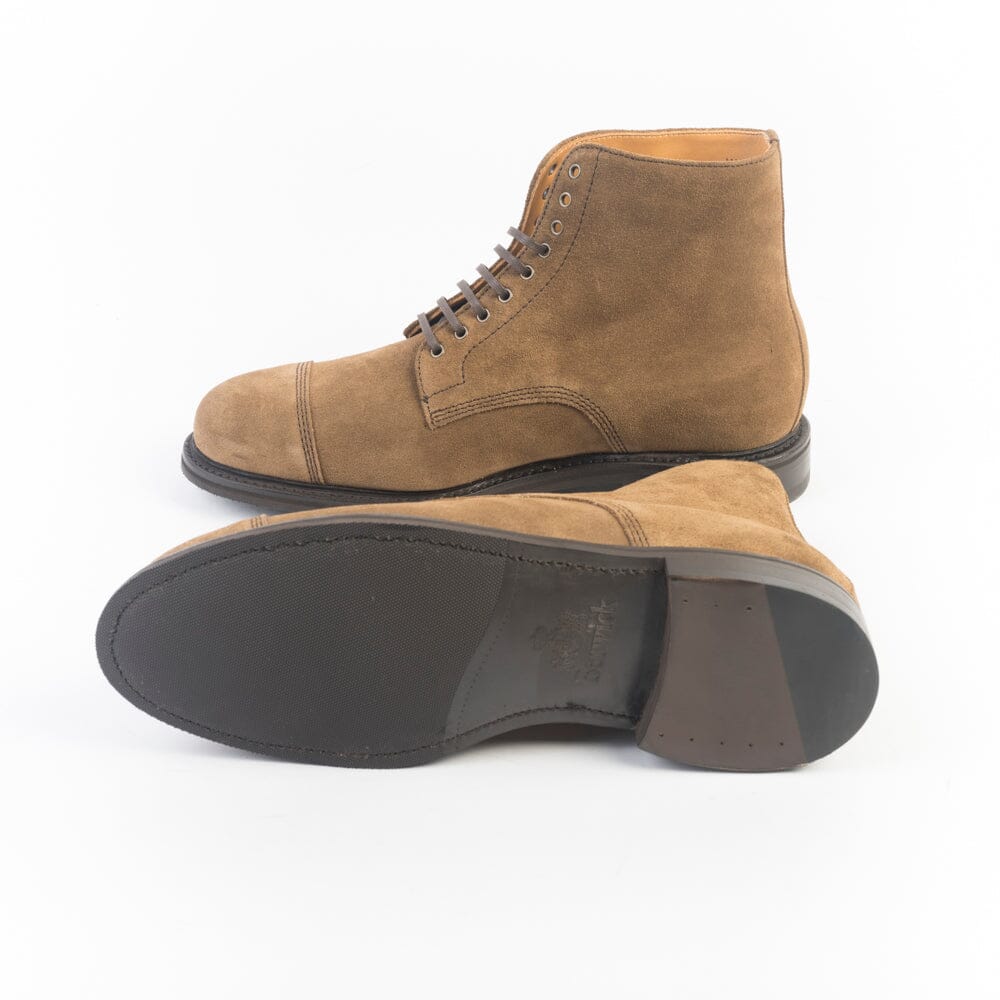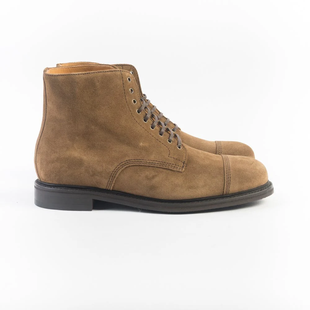 Polacco con puntale, di Berwick 1707, realizzato in camoscio di colore noce. Chiusura 9 fori con lacci piatti in cotone cerato in nuance. Costruzione Goodyear, interno e sottopiede in pelle, suola in gomma antiscivolo.