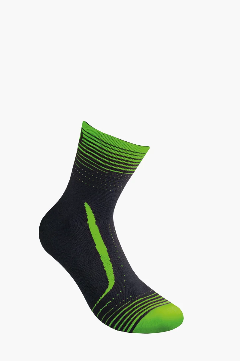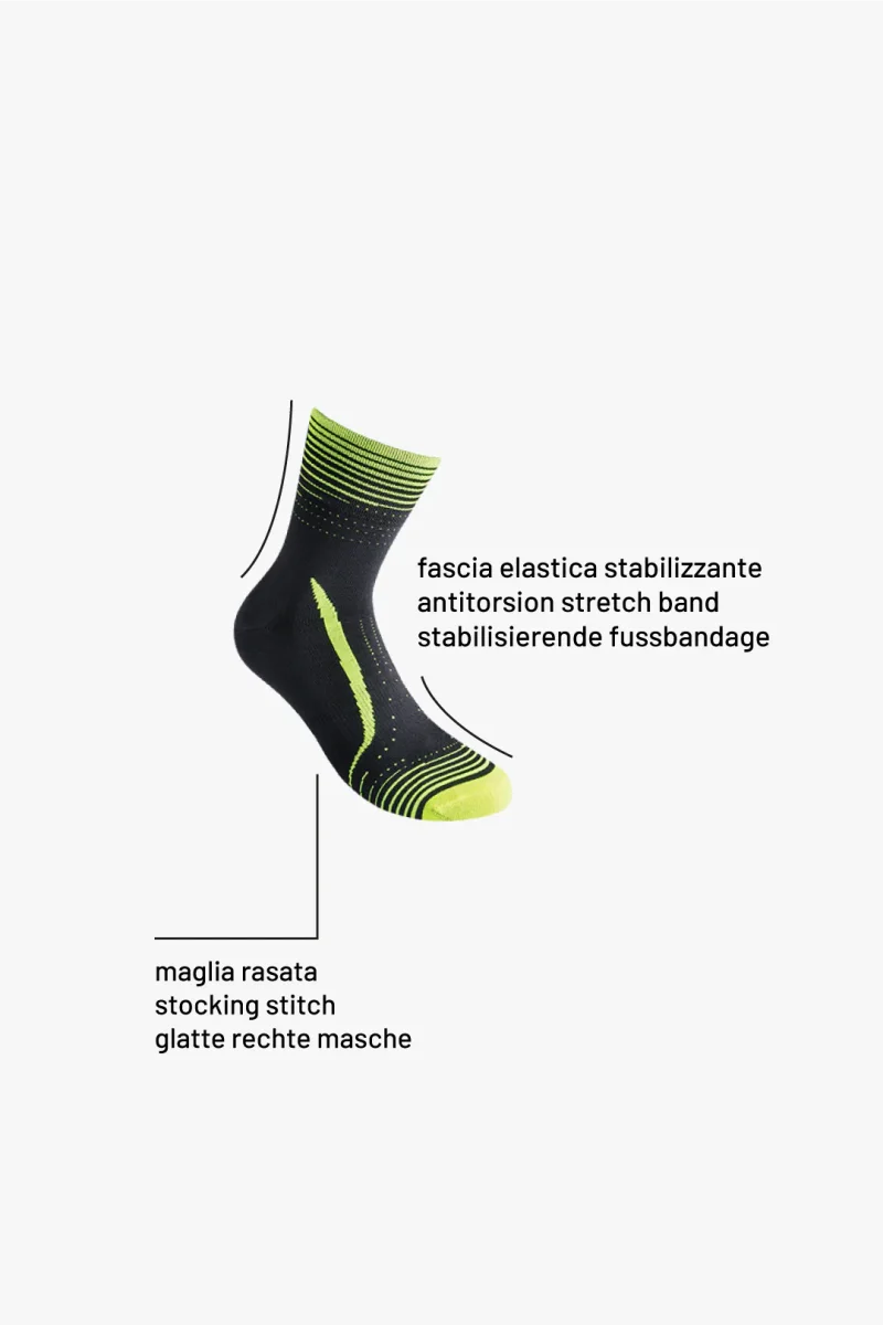 Una calza sottile e traspirante dedicata al ciclista MTB e BDC. Completamente in microfibra antibatterica, è leggera, sottile e performante,. Una fascia elastica avvolge l’avampiede assicurando un’eccezionale simbiosi con la scarpa mentre il polsino alto la rende stabile sulla gamba. I colori brillanti aumentano la visibilità del ciclista durante gli allenamenti su strada.