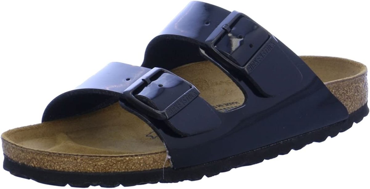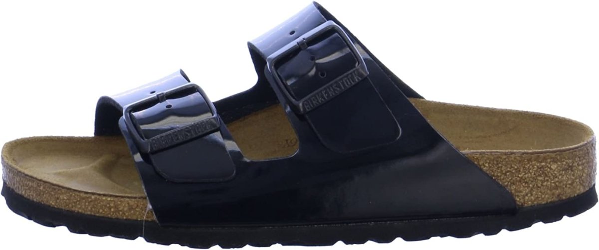 ciabatta birkenstock in birkoflor colore nero lucido, sottopiede birkenstock anatomico