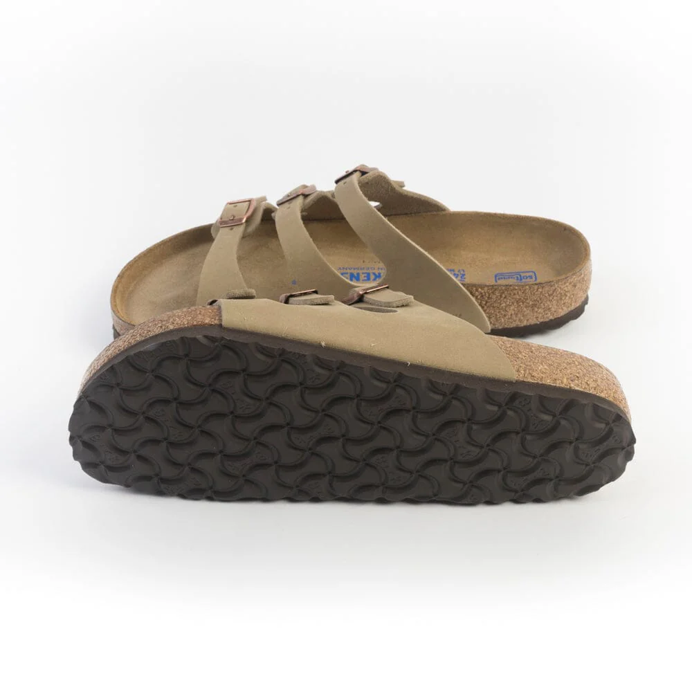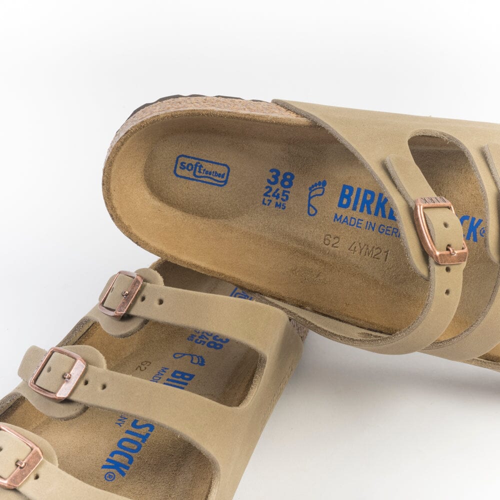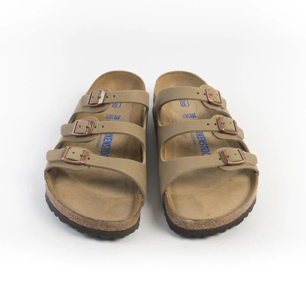 Sandalo Florida di Birkenstock, con tripla fibbia regolabile, realizzato in morbido nabuck di colore tabacco. Plantare dalla forma anatomica in camoscio. Suola in EVA, soletto soft che si distingue per l’eccezionale comfort.