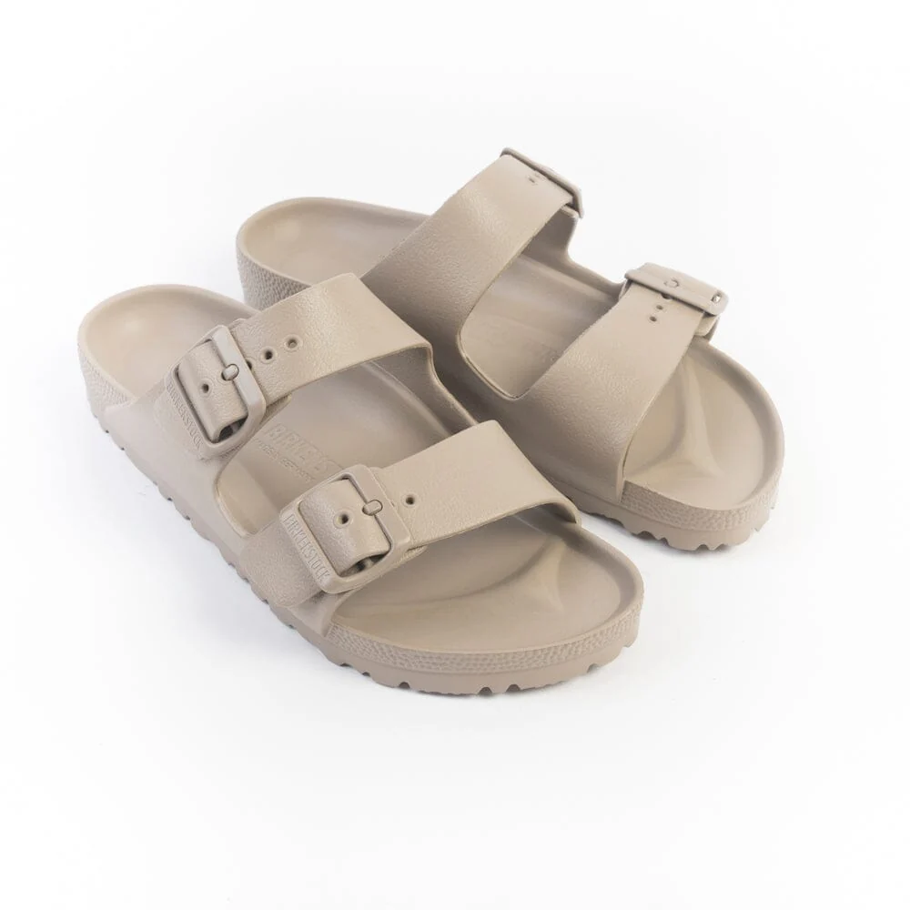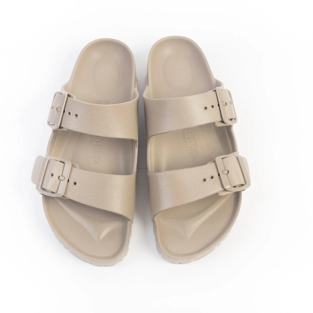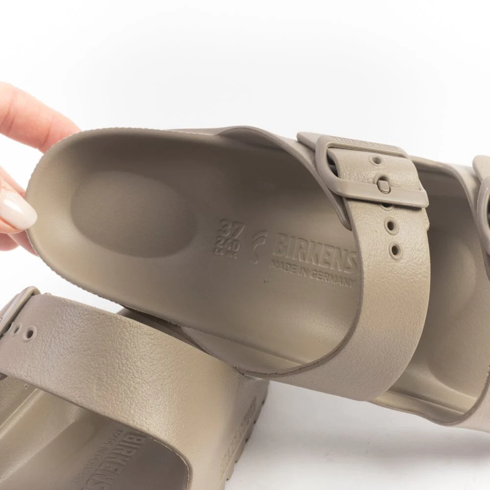 Sandalo Arizona di Birkenstock di colore grigio tortora con doppia fibbia regolabile in pvc in nuance, realizzato in EVA .
