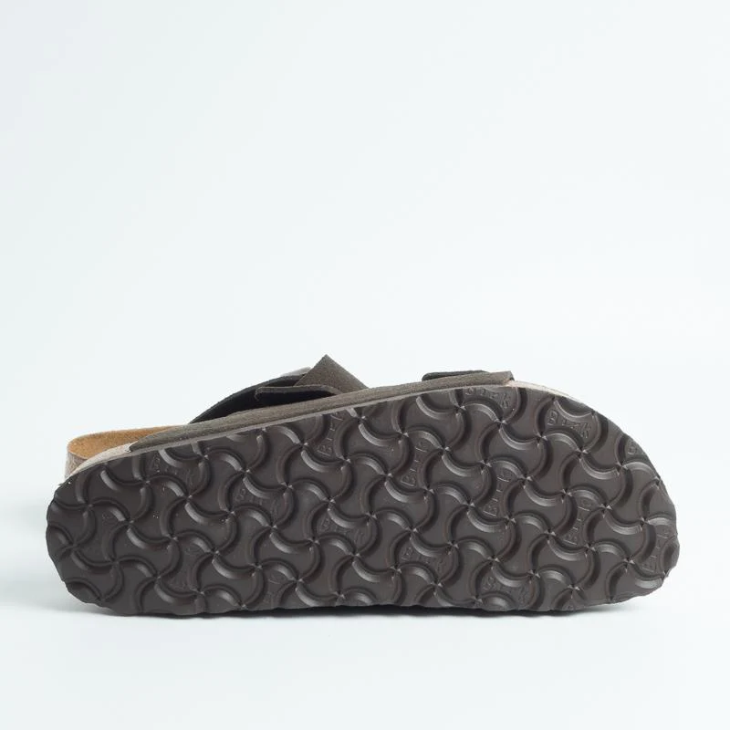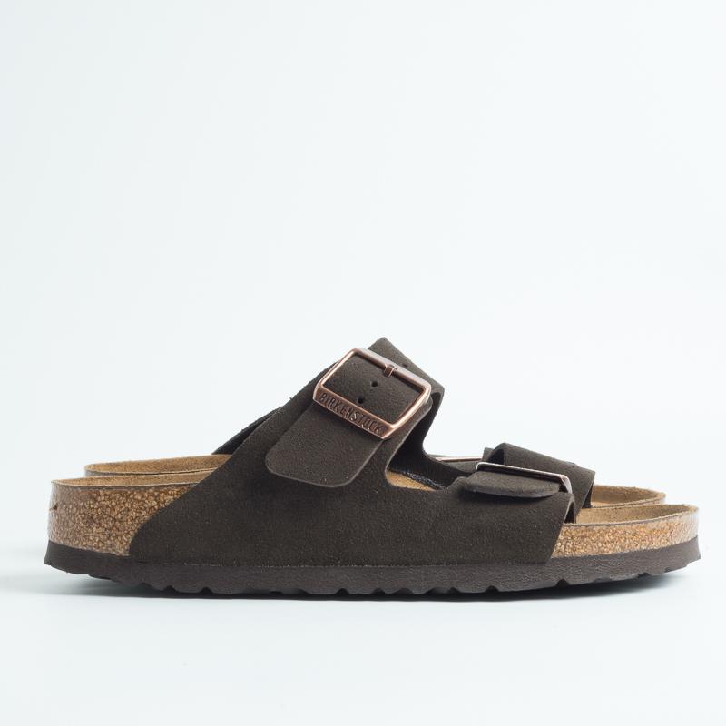 Sandalo Arizona unisex con doppia fibbia regolabile in camoscio colore testa di moro. Plantare soft footbed dalla forma anatomica in pelle. Suola in EVA.