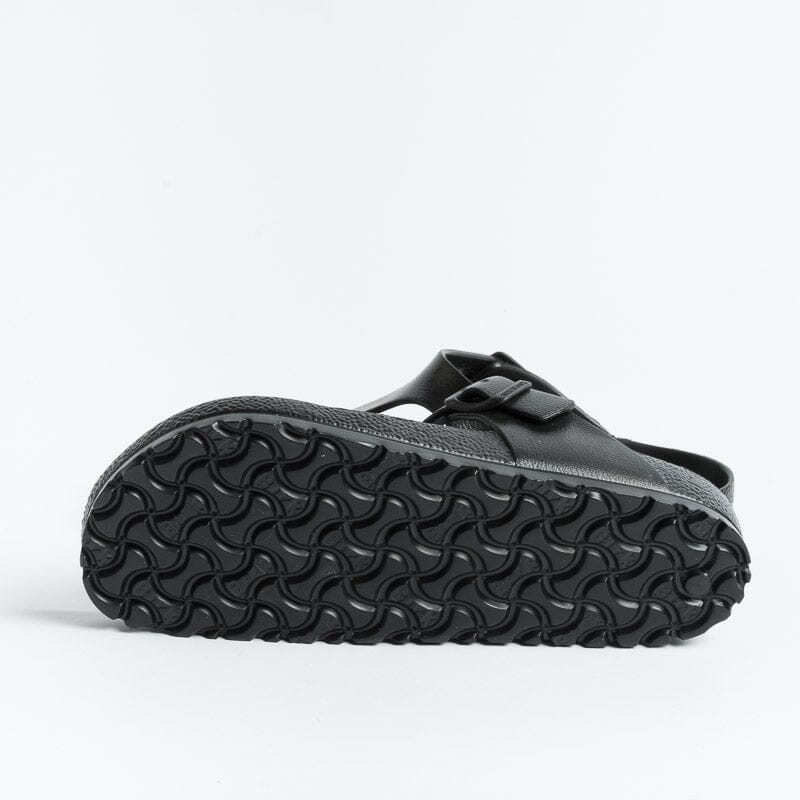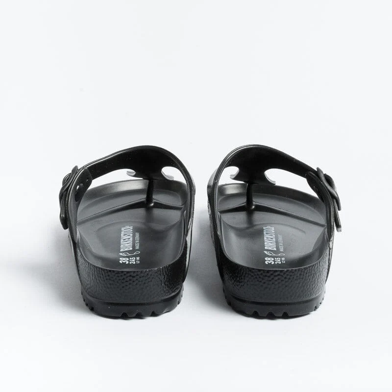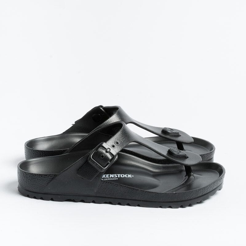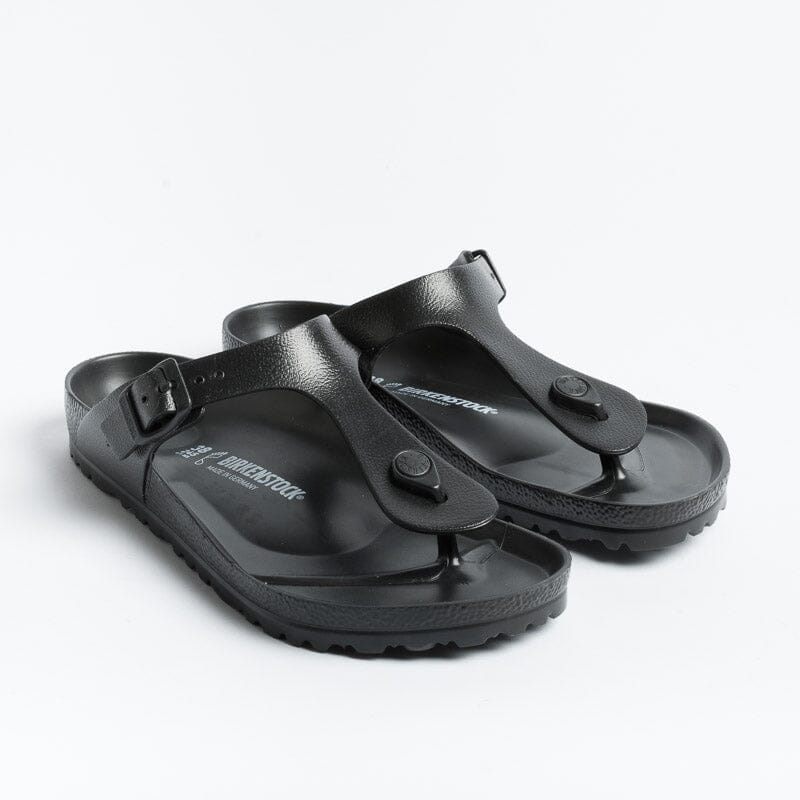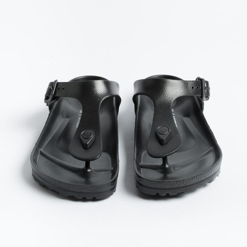 Iconico sandalo infradito Gizeh di Birkenstock realizzato in EVA di colore nero con fibbia regolabile. Realizzate in Germania.