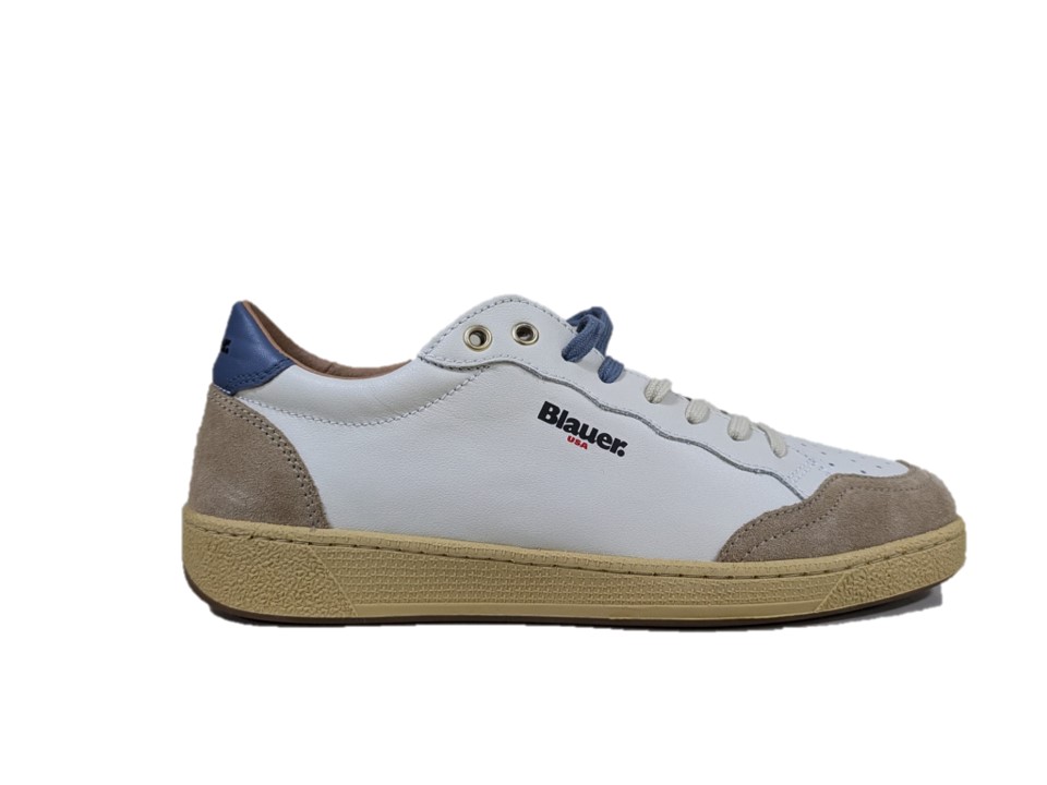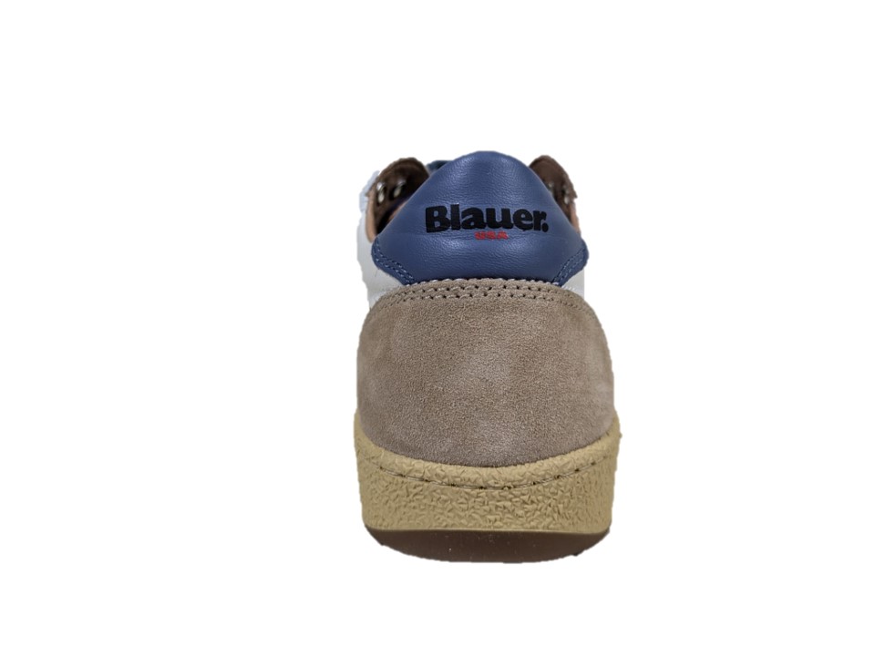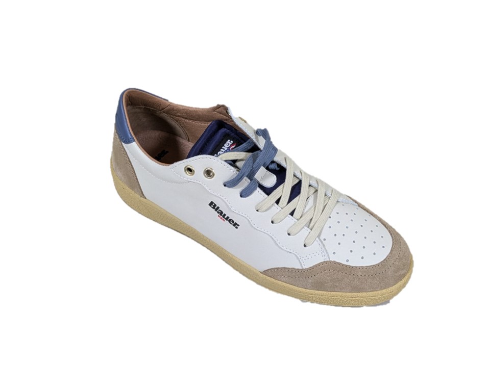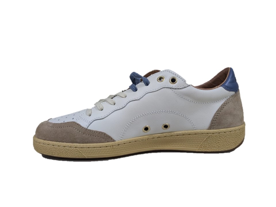 sneakers in pelle e pelle scamosciata colori bianco e marrone, suola in gomma
