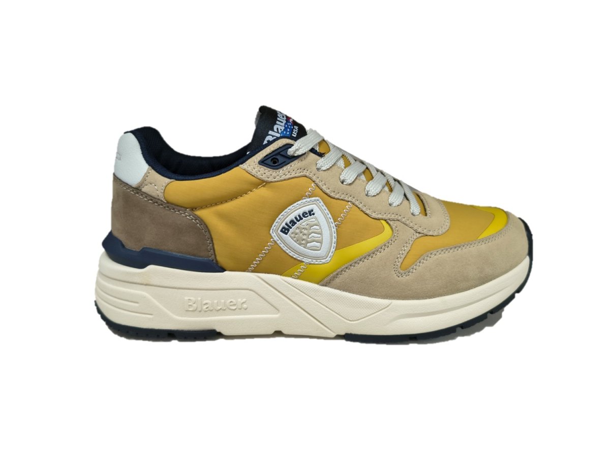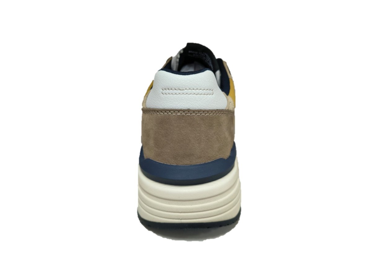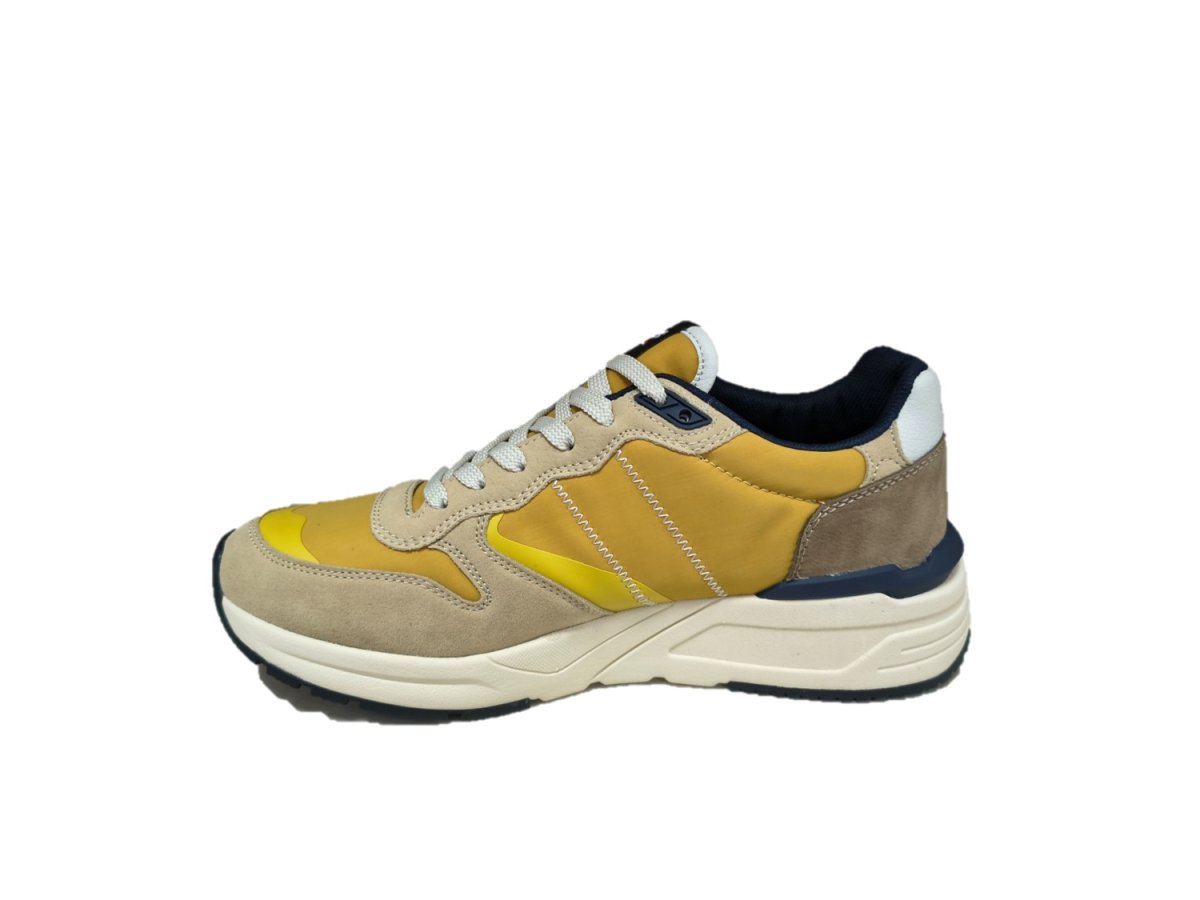 sneakers in pelle scamosciata e tessuto colori beige e giallo, suola in gomma, fodera in tessuto