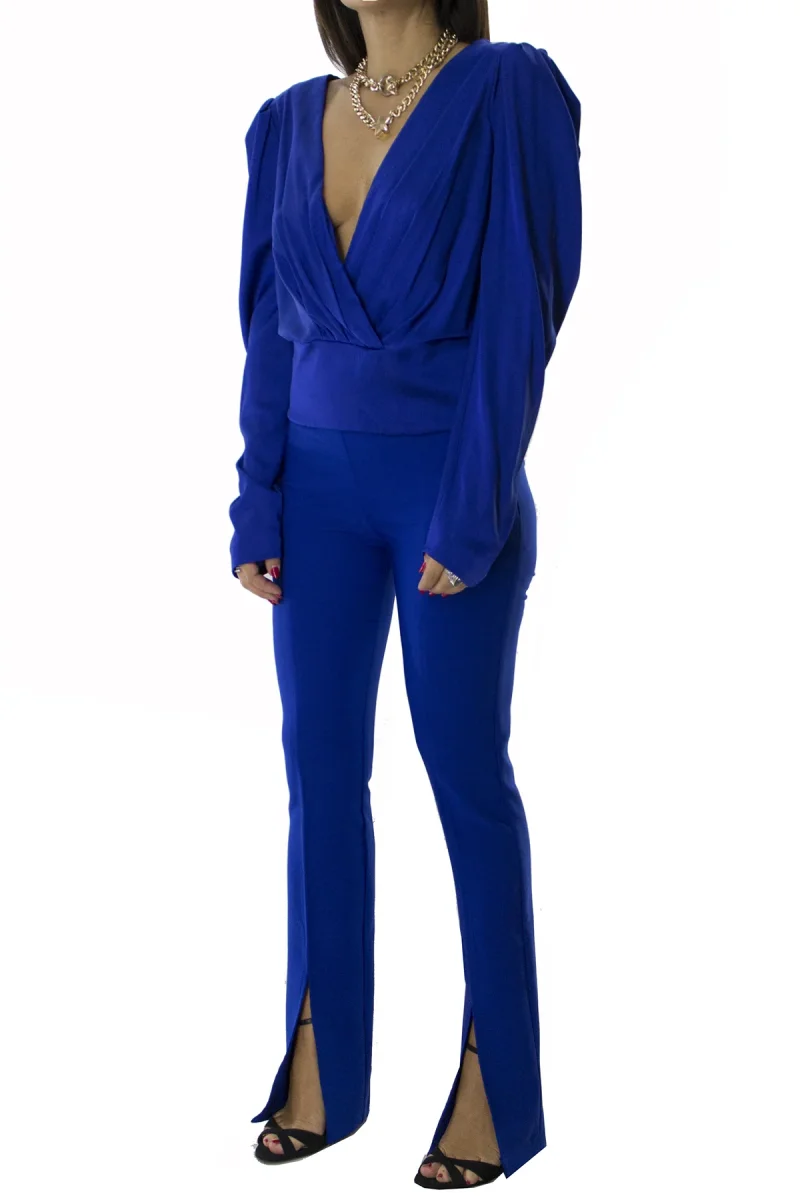 Blusa donna con spallina tessuto raso morbido scollo profondo