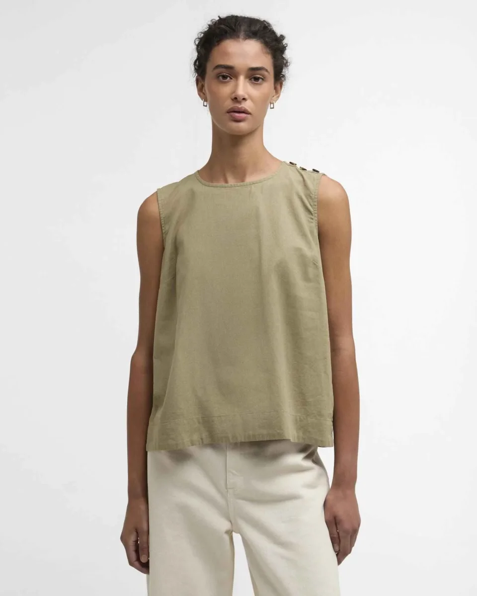 Caratterizzata da un design sobrio, la blusa senza maniche Josie di Barbour è realizzata in misto lino per offrire una meravigliosa sensazione di leggerezza e un comfort incredibile. Impreziosito da dettagli con bottoni sulle spalle, questo modello versatile senza maniche non può assolutamente mancare nel tuo guardaroba estivo