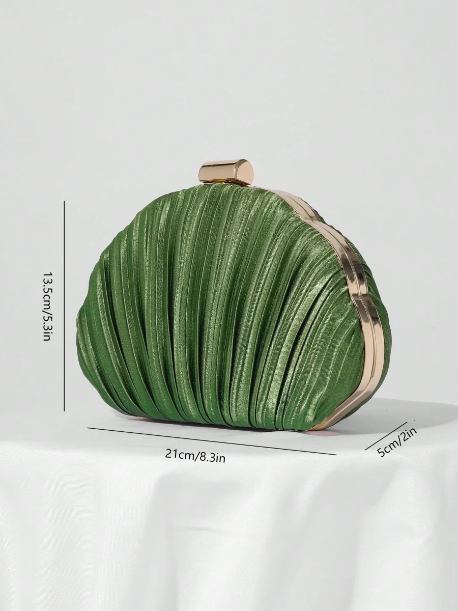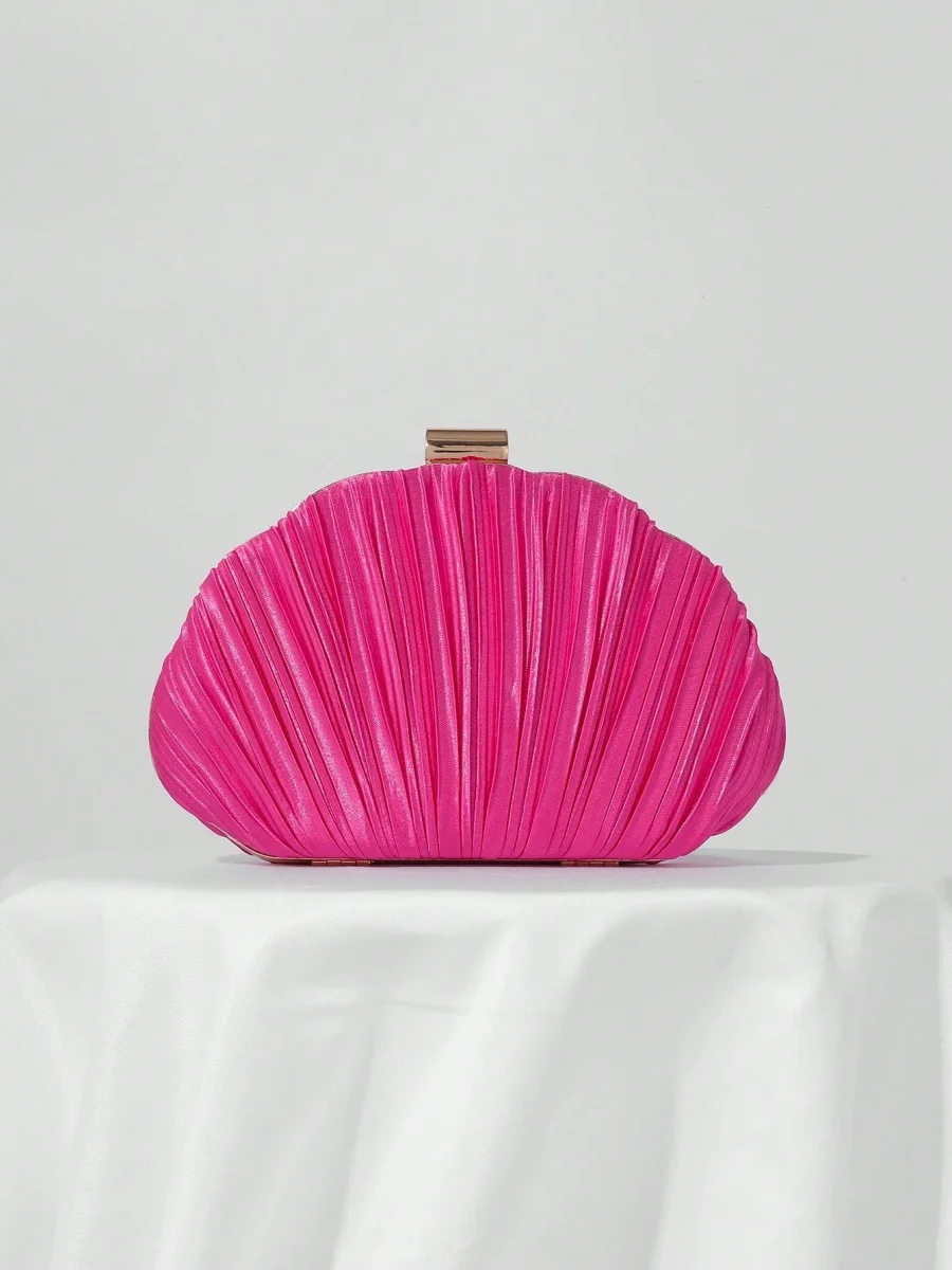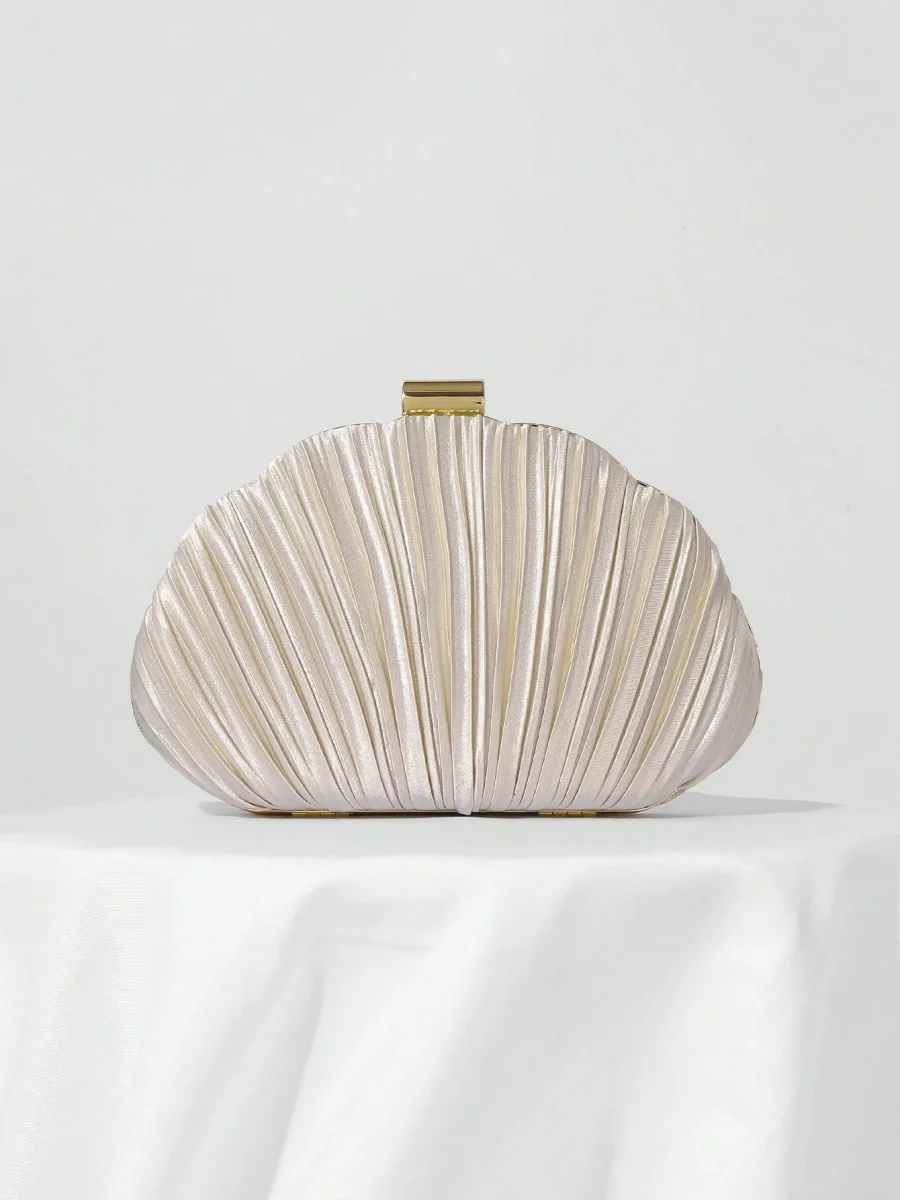 Borsa da sera a conchiglia in raso plissettato con tracolla