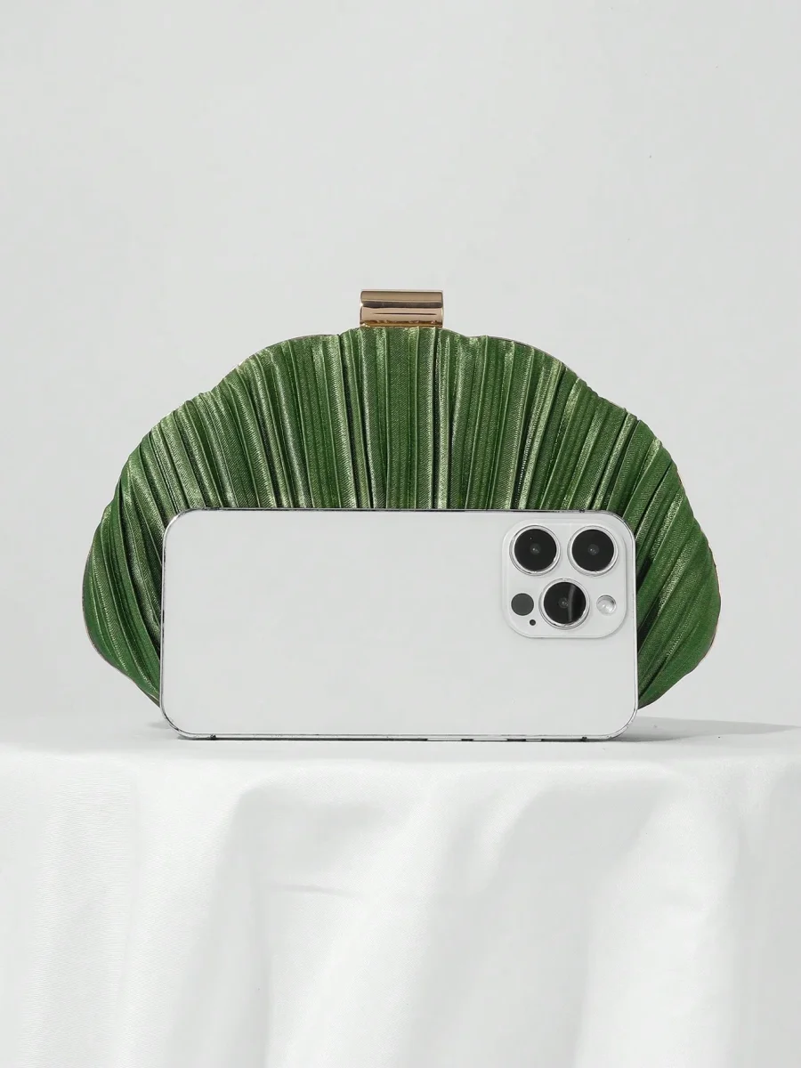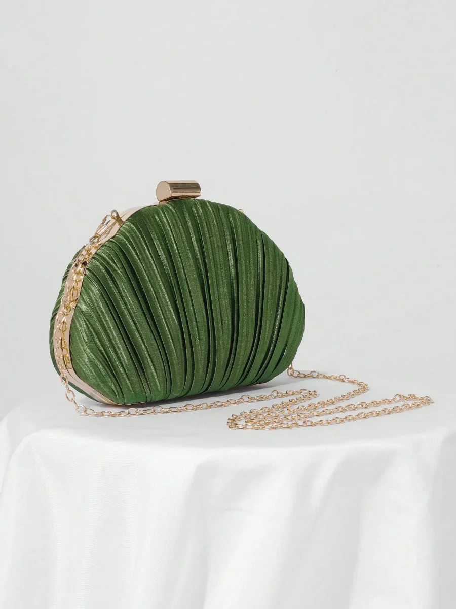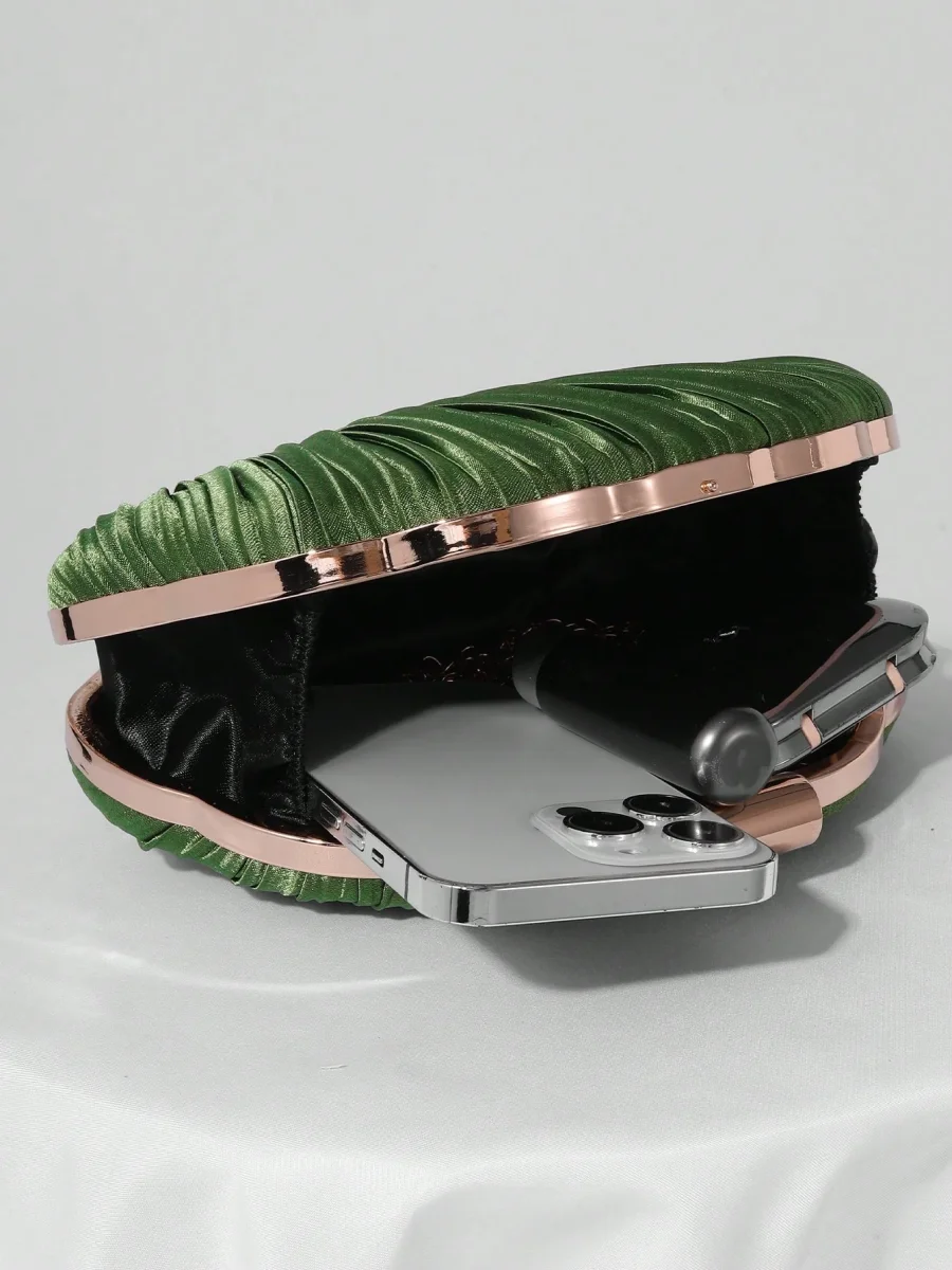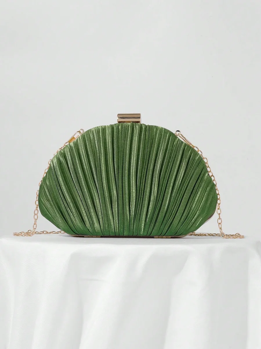 Borsa da sera a conchiglia in raso plissettato con tracolla