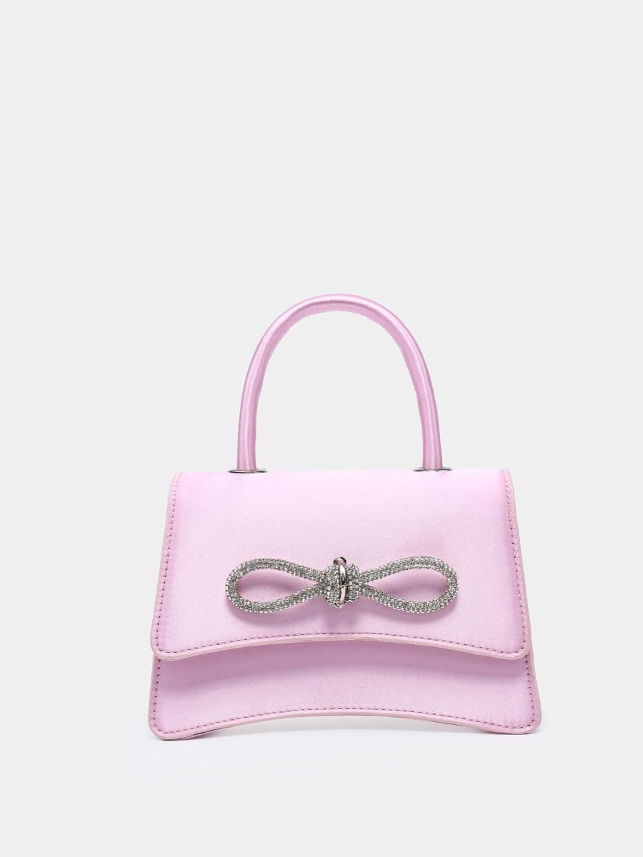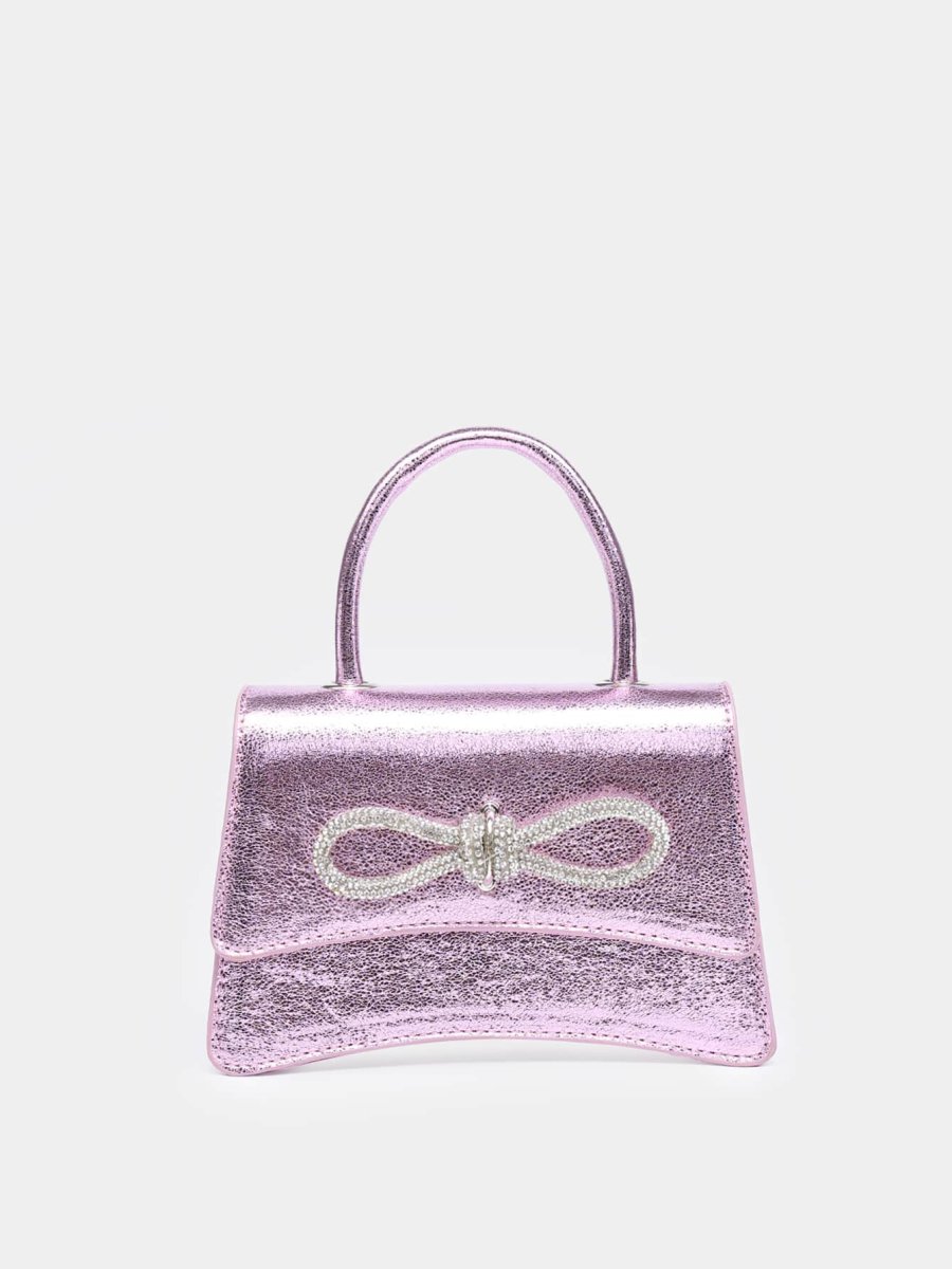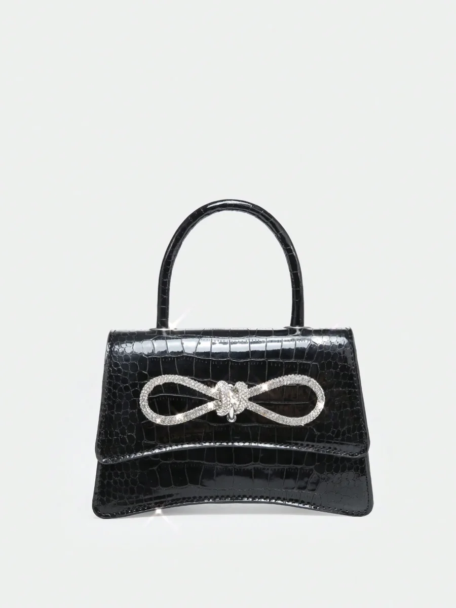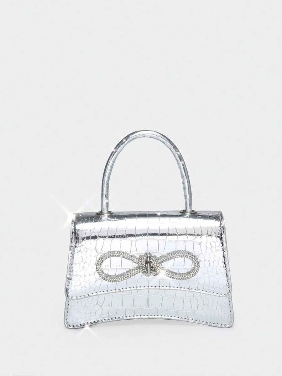 Borsa quadrata mini con strass & fiocco effetto coccodrillo