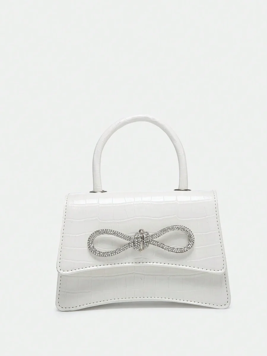 Recensisci per primo “Borsa quadrata mini con strass & fiocco effetto coccodrillo”