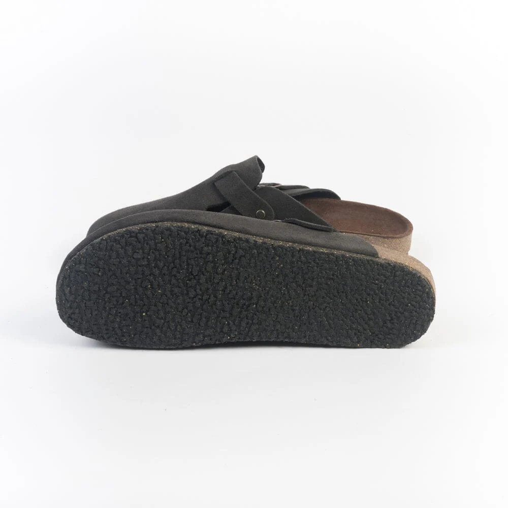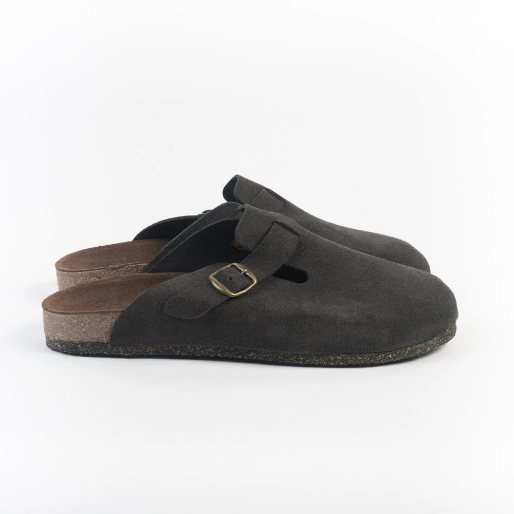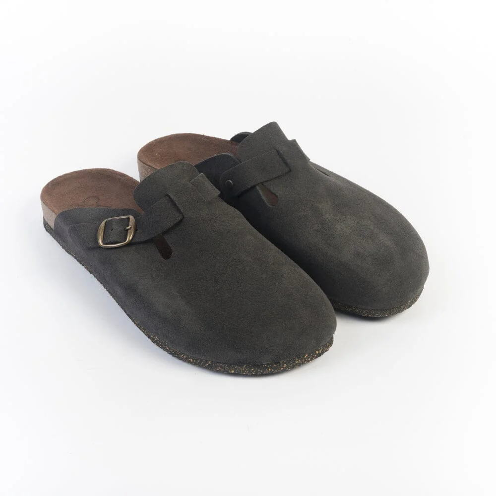 Sleepers uomo di Bosabo, realizzate in camoscio di colore marrone scuro. Fascia di chiusura su collo del piede, regolabile con fibbia. Fondo in gomma. Plantare anatomico in camoscio con soletta interna in sughero. Disponibili anche nella variante di colore taupe.