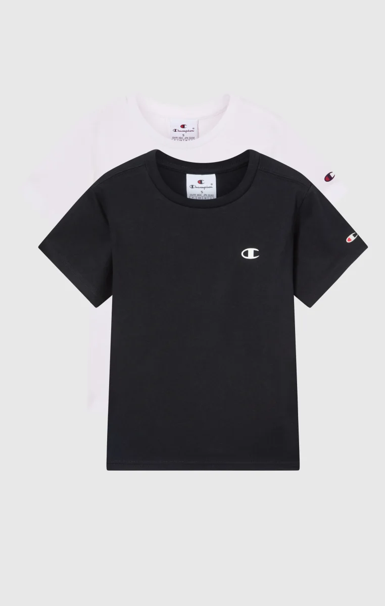 Essential and practical, these boys’ short-sleeve T-shirts from the Icons line are made from lightweight cotton jersey, ideal for everyday wear. The 2-pack offers comfort and versatility, perfect for school, leisure time and daily activities. The clean design and Standard fit ensure ease of movement and a natural feel, finished with the Champion logo.@@@Fit: Standard, versatile and comfortable fit |Fabric: Light Cotton Jersey |Composition: 100% Cotton |Weight: 150 g/m² |2-pack T-shirts |Short sleeves |Clean, essential design |Straight hem |Applied Champion logo