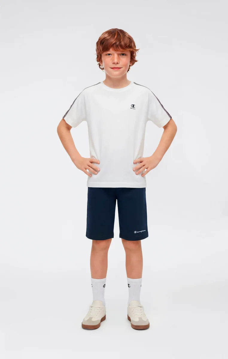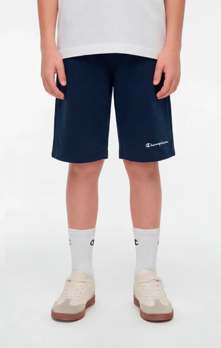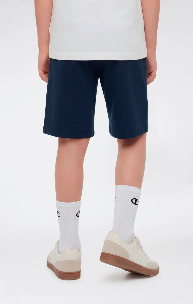 These boys’ Icons bermuda shorts are designed to support everyday activities with comfort and practicality. Made from ultra-light compact poly terry cotton-blend fabric, they provide a lightweight structure and a soft hand feel, ideal for all-day wear. The clean design features an elasticated waistband with adjustable drawstring and a small embroidered Champion logo, a subtle detail that reflects the brand’s authentic DNA. The Standard Fit ensures a regular and comfortable silhouette.@@@Standard Fit, comfortable regular silhouette |Ultra-light compact poly terry fabric |Composition: 73% Cotton, 27% Polyester |Weight: 240 g/m² |Elasticated waistband with drawstring |Small embroidered Champion logo
