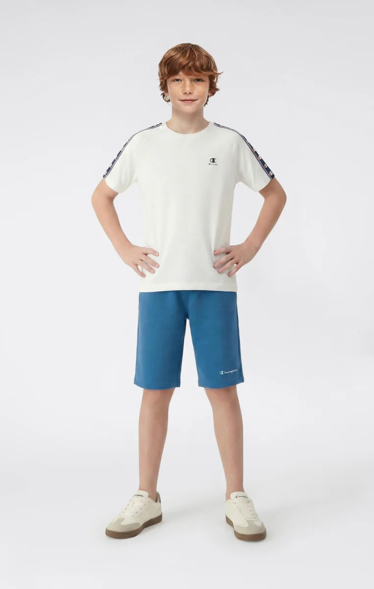 These boys’ Icons bermuda shorts are designed to support everyday activities with comfort and practicality. Made from ultra-light compact poly terry cotton-blend fabric, they provide a lightweight structure and a soft hand feel, ideal for all-day wear. The clean design features an elasticated waistband with adjustable drawstring and a small embroidered Champion logo, a subtle detail that reflects the brand’s authentic DNA. The Standard Fit ensures a regular and comfortable silhouette.@@@Standard Fit, comfortable regular silhouette |Ultra-light compact poly terry fabric |Composition: 73% Cotton, 27% Polyester |Weight: 240 g/m² |Elasticated waistband with drawstring |Small embroidered Champion logo