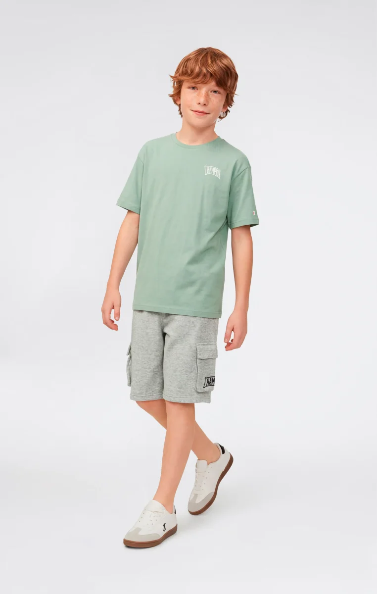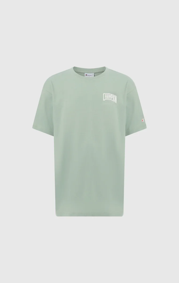 Boys’ crewneck T-shirt with a clean college-inspired street style, designed for everyday urban wear. Made from lightweight cotton jersey, it offers comfort and breathability ideal for warmer days. The Champion print, finished with puff print technique, adds a raised graphic detail that reflects varsity aesthetics and the brand’s heritage. The Relax Fit completes the look with a modern, easy silhouette.@@@Relax Fit, soft and slightly loose |Lightweight cotton jersey fabric |Composition: 100% Cotton |Fabric weight: 150 g/m² |Crewneck |Short sleeves |Champion print with puff print technique |Champion logo applied