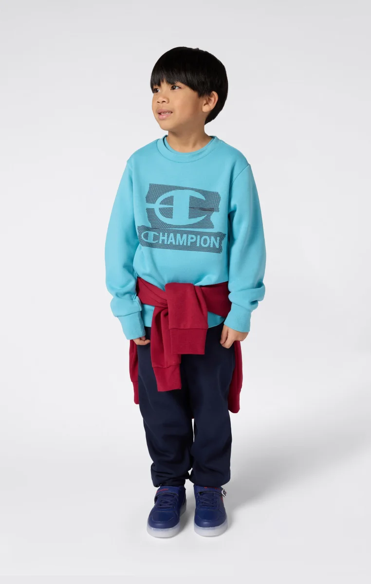 This Boys’ crewneck sweatshirt in soft 240 g/m² Powerblend fleece is warm yet lightweight—ideal for school or casual play. Sporty graphics add a dynamic and distinctive touch, while the standard fit ensures freedom of movement and daily comfort. A must-have for every young Champion fan.@@@Fabric: Ultra-light compact Powerblend Fleece, 240 g/m² |Composition: 54% Cotton, 46% Polyester |Brushed inside |Fit: Standard Fit: versatile and comfortable fit with standard widths and lengths. Close to the body, with simple lines that do not cling to the figure. Regular shoulder cut.