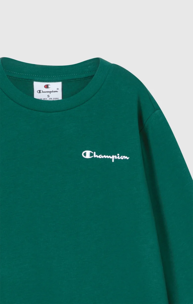 Essential and cozy, this crewneck sweatshirt is a must-have for any casual wardrobe. Made from compact, lightweight fleece, it provides perfect softness and warmth for the season. The contrasting embroidered Champion logo adds a genuine sporty touch to your everyday look.@@@Fabric: Compact and soft fleece in cotton blend 240 g/m² |Composition: 73% Cotton, 27% Polyester |Brushed interior for superior thermal comfort |Ribbed crew neck |Contrast embroidered logo on chest and sleeve |Ribbed cuffs and hem |Fit: Standard Fit – versatile and comfortable with standard widths and lengths. Close to the body with simple lines that don’t cling. Regular shoulder cut.