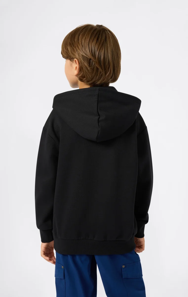 This Boys’ hoodie blends sporty style with comfort. Made of 280 g/m² fleece with brushed interior, it’s warm yet lightweight. The bold Champion graphic on the chest draws inspiration from college style, for a cool, up-to-date look.@@@Fabric: Compact cotton-blend fleece, 280 g/m² |Composition: 70% Cotton 30% Polyester |Brushed interior |Front pockets |Fit: Standard Fit: versatile and comfortable fit with standard widths and lengths. Close to the body, with clean lines that do not cling. Regular shoulder cut.
