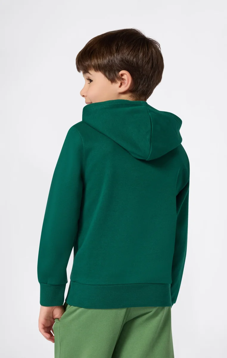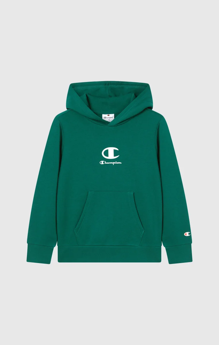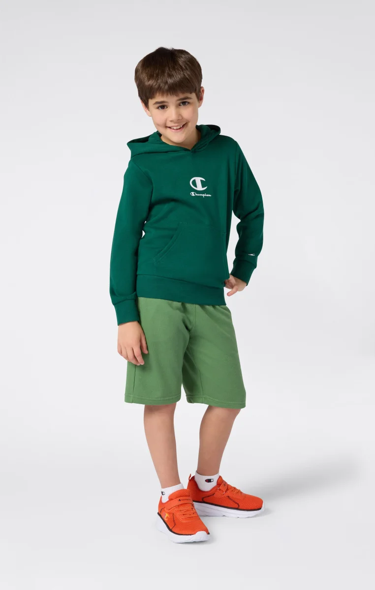 This children’s hooded sweatshirt is designed to provide comfort and lightness throughout the day. Made from ultra-light and compact fleece fabric, it is perfect for mid-seasons and active outings. The Champion logo on the chest adds an authentic touch to the sporty style.@@@Fabric: Compact and soft fleece in ultralight polyester – 240 g/m² |Composition: 73% Cotton, 27% Polyester |Brushed interior for superior thermal comfort |Fit: Standard Fit – versatile and comfortable with standard widths and lengths. Close to the body with simple lines that don’t cling. Regular shoulder cut.
