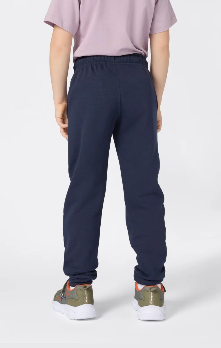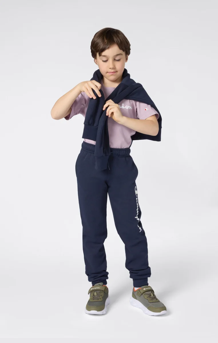 These Boys’ pants combine comfort and style for everyday wear. Made from lightweight Fleece with a brushed lining, they offer softness and warmth without weighing you down. Ribbed cuffs ensure a secure fit, while the script Champion logo along the leg adds a sporty signature touch.@@@Fabric: Soft and compact cotton-blend fleece, 240 g/m² |Composition: 55% Cotton 45% Polyester |Brushed interior |Fit: Standard Fit: versatile and comfortable fit with standard widths and lengths.