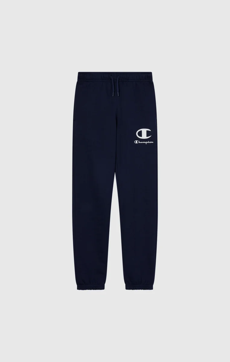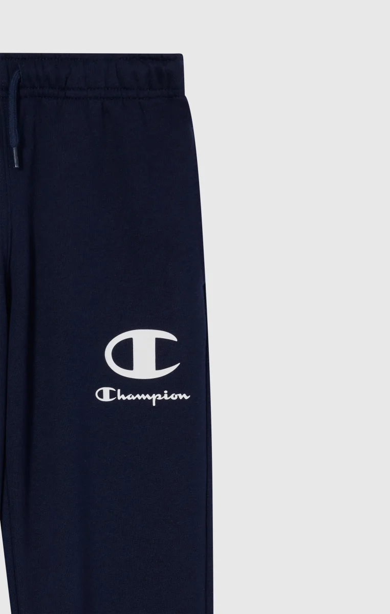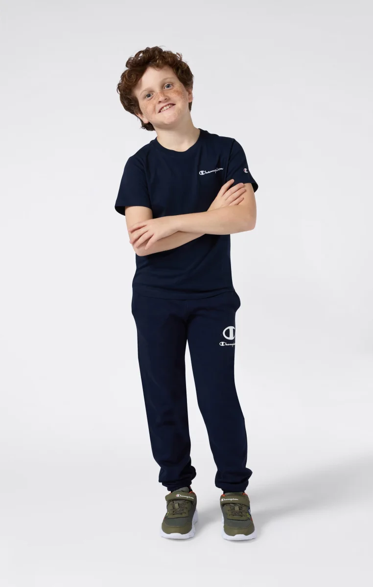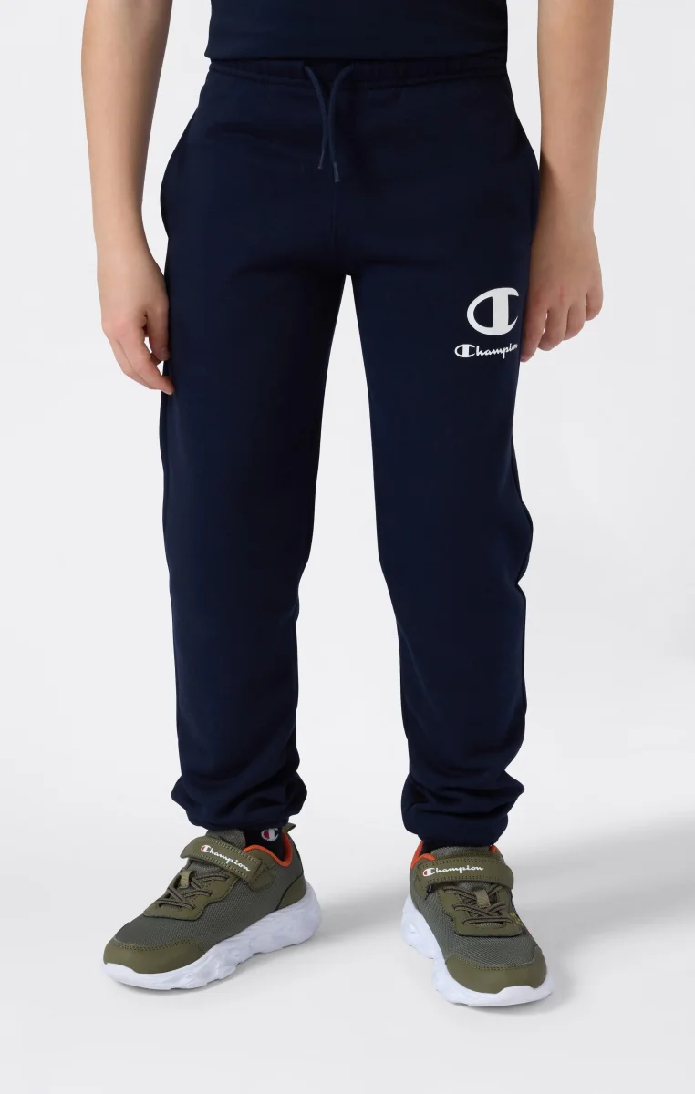 These boys’ fleece jogger pants combine comfort and practicality, perfect for school, play and leisure. Made from compact, ultra-light fleece fabric (240 g/m²), they provide softness, warmth and durability. The brushed interior ensures extra comfort throughout the day. An elasticated waistband with drawcord allows for an adjustable fit, while cuffed ankles keep the look secure. The large Champion logo printed on the leg adds a sporty, iconic touch, ideal for an active everyday style.@@@Composition: 73% Cotton, 27% Polyester |Fabric: Ultra Light Soft Compact Fall Poly Fleece, 240 g/m² |Brushed interior |Front pockets |Elasticated waistband with adjustable drawcord |Elasticated ankle cuffs |Large Champion logo printed on the leg |Fit: Regular Fit – comfortable, follows the body’s lines without being tight