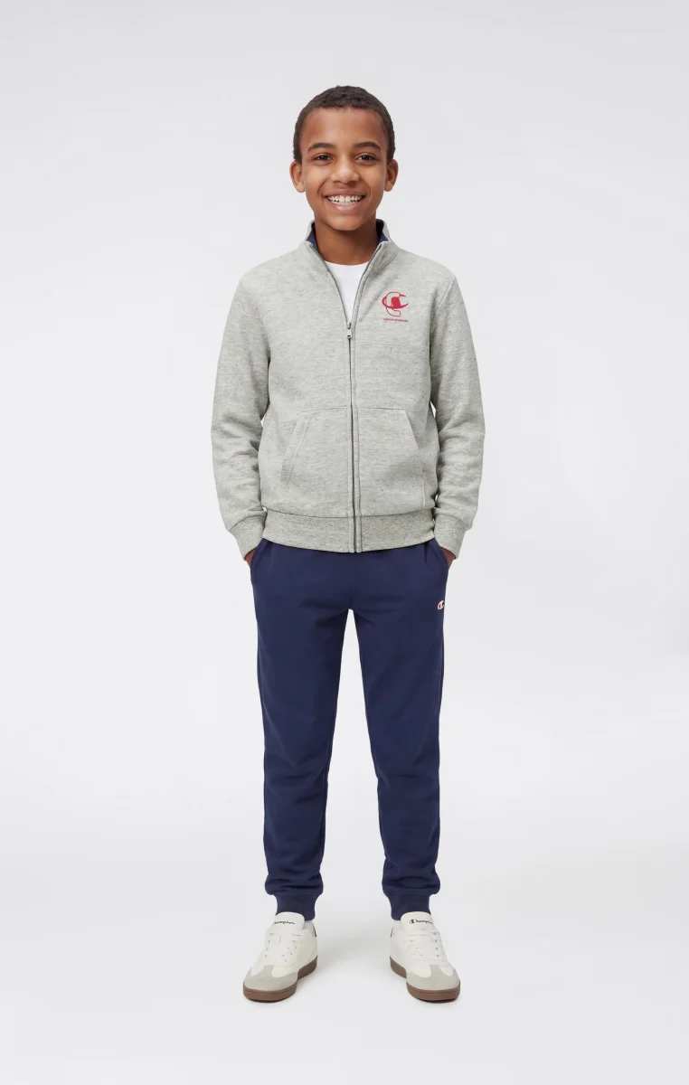 Boys’ tracksuit with an iconic sportswear style, composed of a full zip sweatshirt and matching pants. Made from lightweight cotton-blend Terry fabric, it offers comfort and practicality for everyday wear. The graphic applied on the front of the sweatshirt adds a distinctive touch to the design, while the non-brushed interior and Standard Fit ensure a lightweight feel and a regular silhouette suitable for daily movement.@@@Standard Fit, comfortable with a regular silhouette |Lightweight cotton-blend Terry fabric |Composition: 55% Cotton, 45% Polyester |Fabric weight: 240 g/m² |Non-brushed interior |Full zip sweatshirt |High collar |Front pockets on the sweatshirt |Graphic applied on the front |Elasticated waistband with drawstring on pants |Side pockets on pants |Champion logo applied